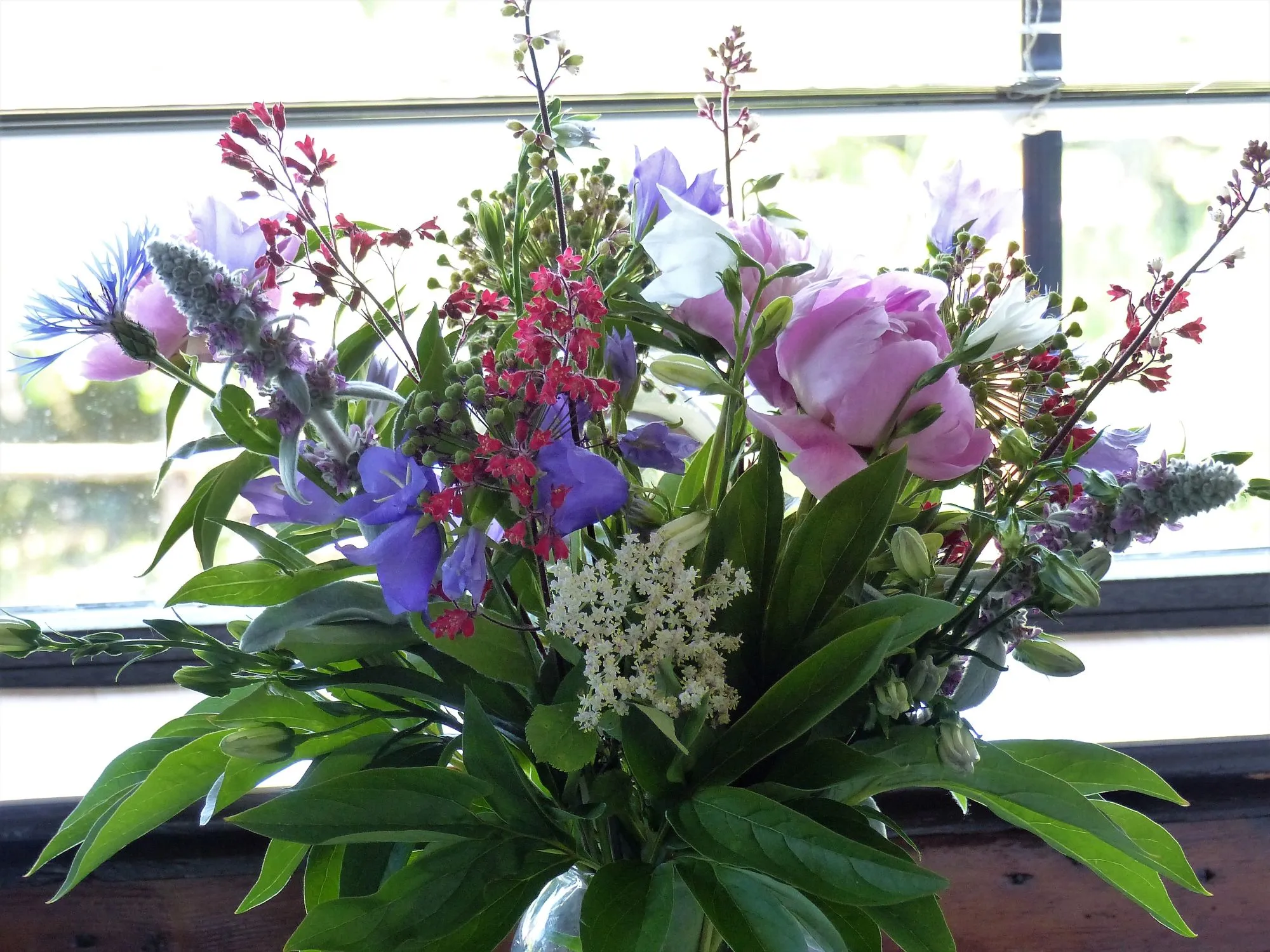 Ich bin mal gerade fähig, einen Strauß so in eine Vase zu packen, daß sie drin bleiben![]()