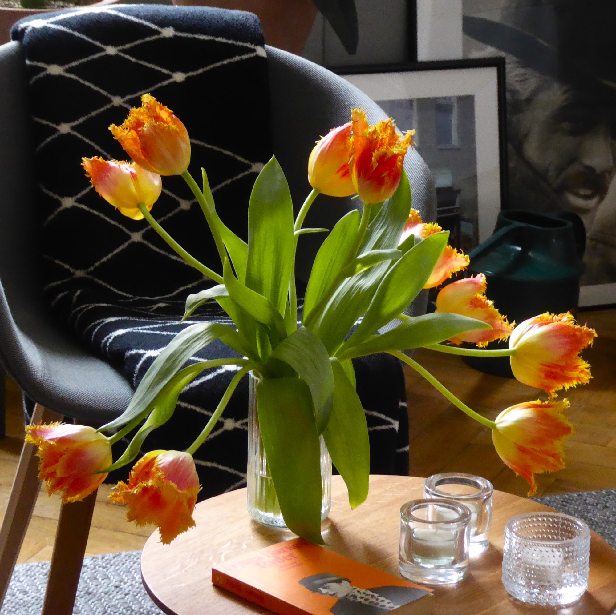 Ich warte bezüglich Tulpen auf den echten Frühling. Im nächstgelegenen Supermarkt gibt es auch immer wieder mal bunte Sträuße, die meist auch recht lange halten. Einfach für etwas Farbe .. ..