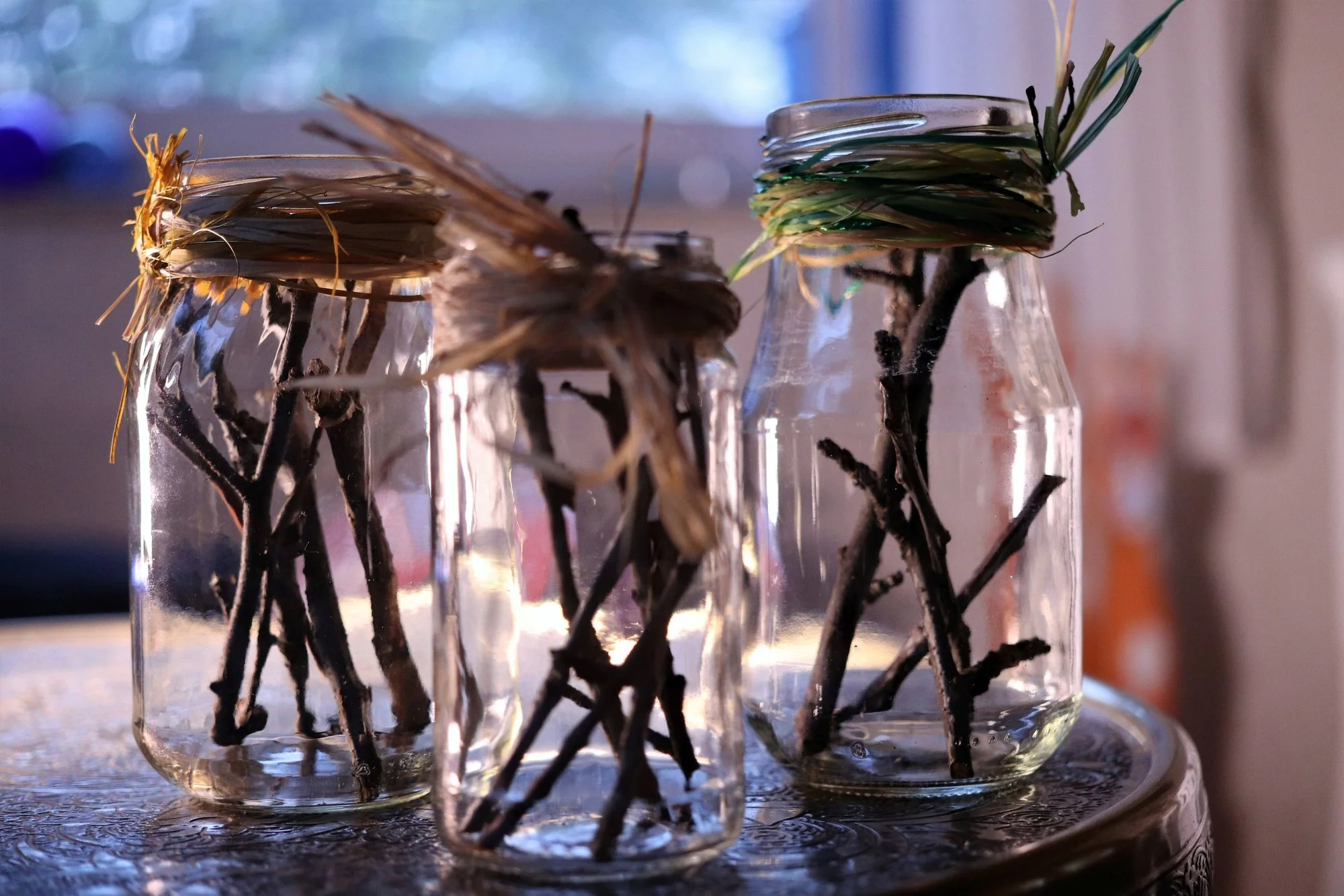 Vor lauter Weihnachtsdeko hab ich kein Plätzchen mehr für Blumensträuße im Haus. Hab auch keine Blumen mehr im Garten. Aber dafür Zweiglein und kleine Gläschen... Passt das auch in diesen