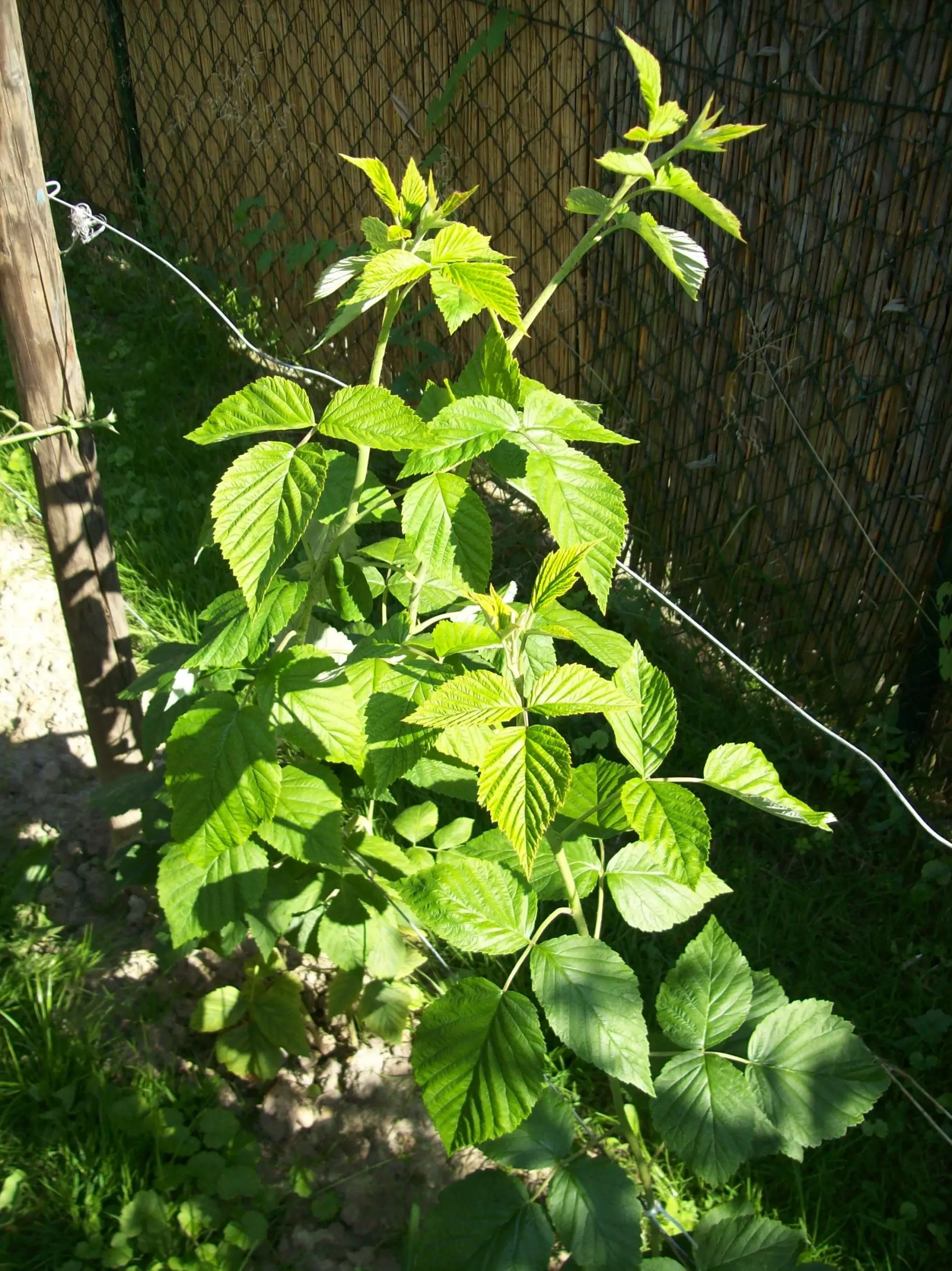 ABER: Diese Art Brombeeren hatte ich auch an meinem Gartenzaun. Nun wachsen da diese Himbeeren – „gedüngt" durch den nahestehenden Kompost.