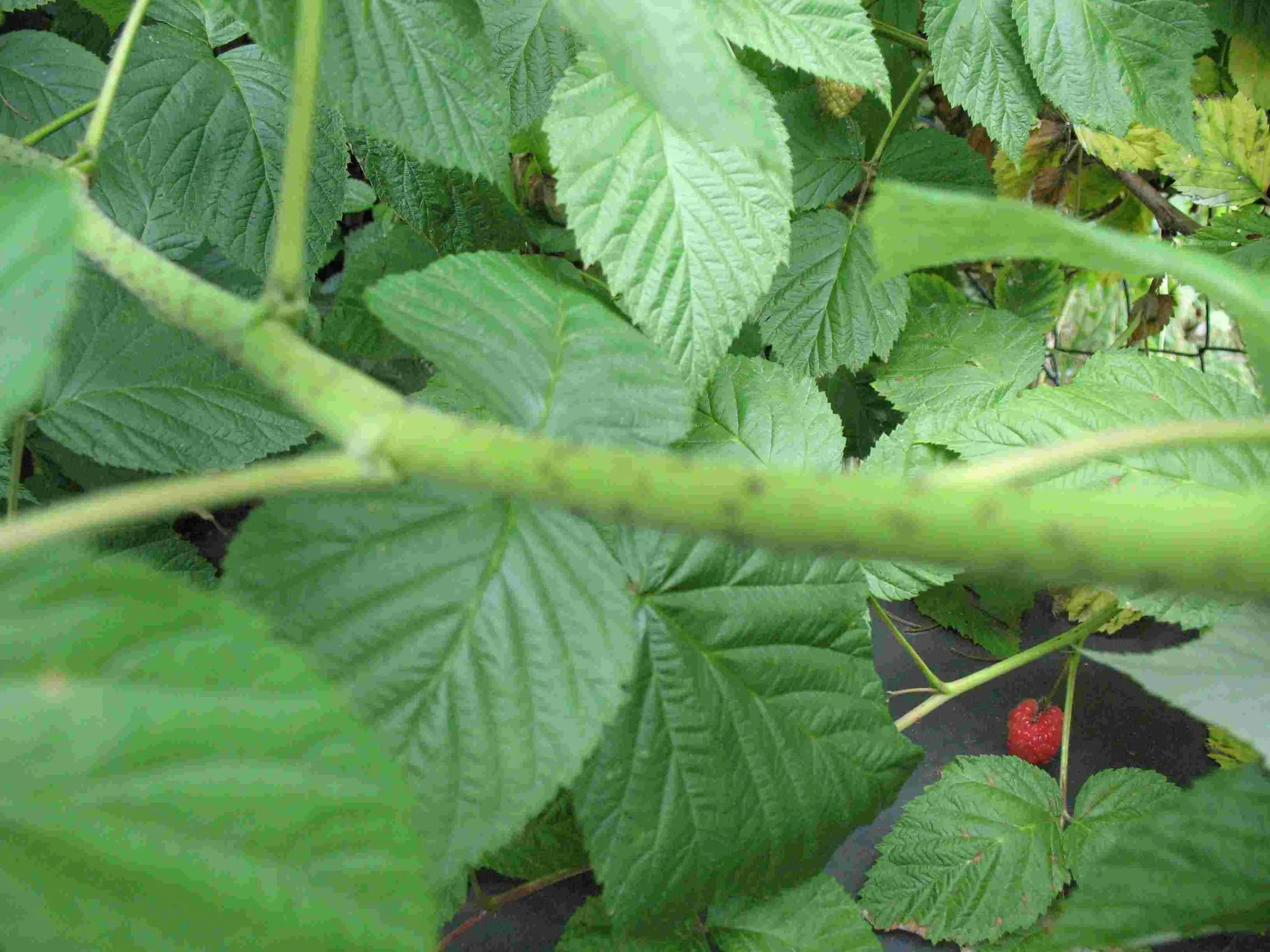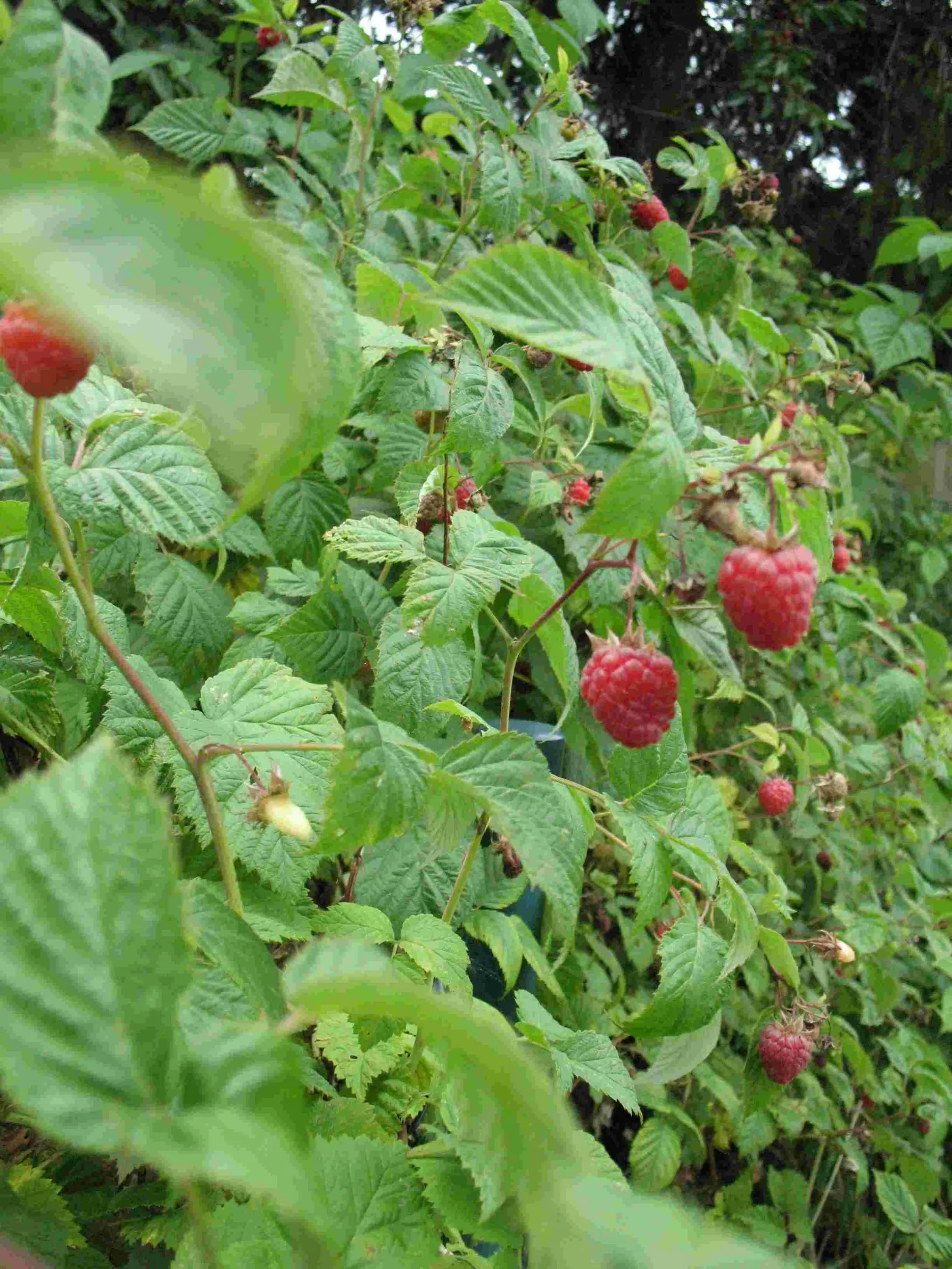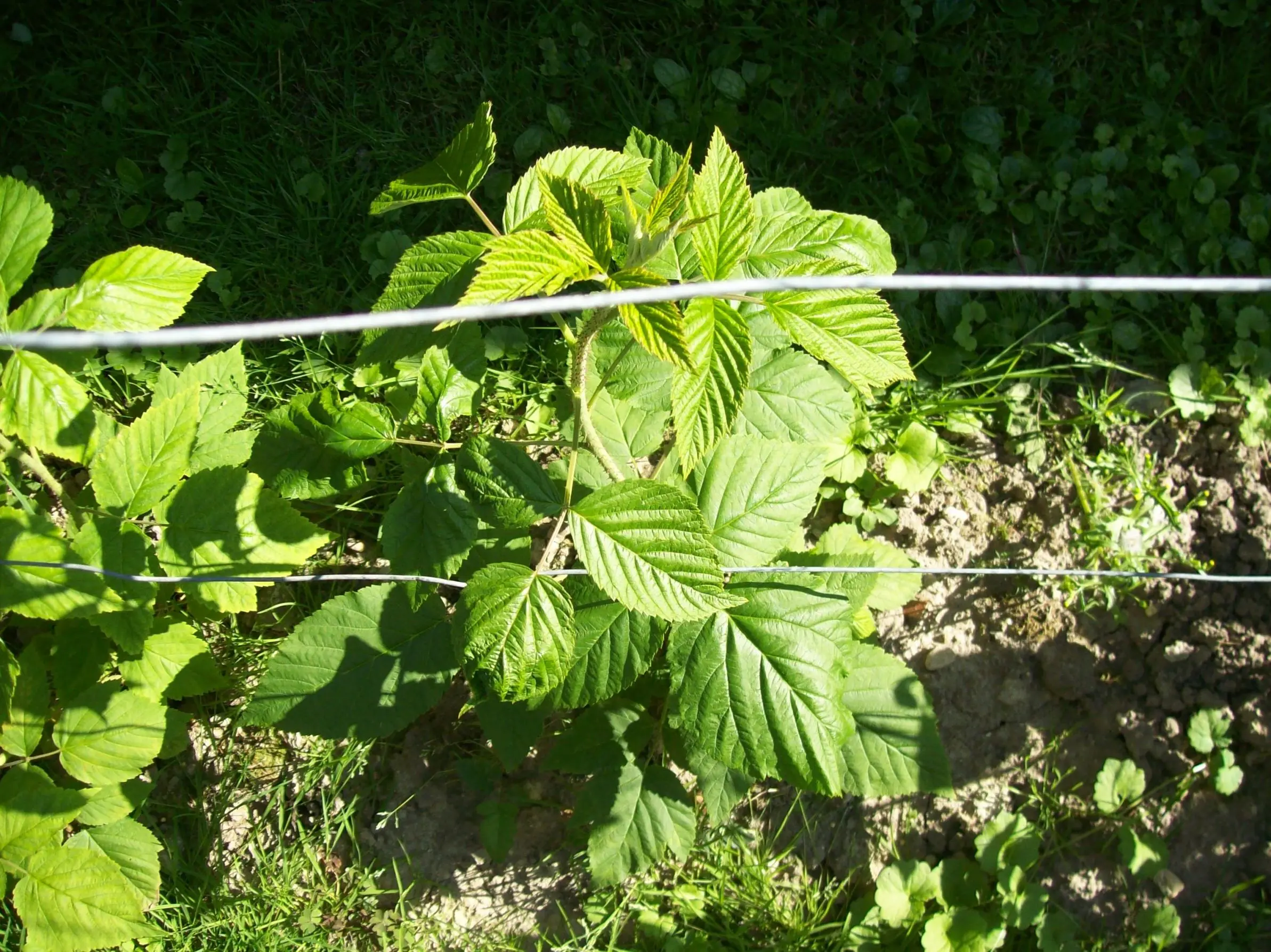 hier noch die frisch gesetzten Himbeeren, schnell fotografiert - komplett anderes Blattwerk