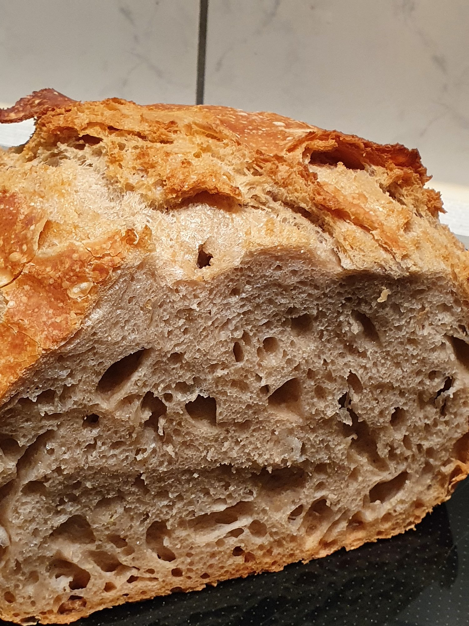 Ich bin auch mal wieder zum Backen gekommen, heraus kam ein Joghurt-Schrot-Brot mit Dinkelschrot,Sauerteig ohne Hefe.