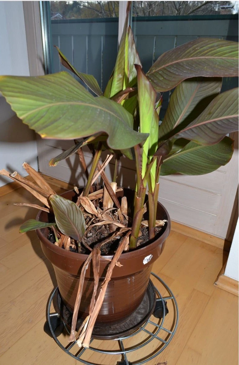 im Folgenden seht ihr ein Bild meines ind. Blumenrohrs. Die Pflanze ist über den Sommer ordentlich gewachsen, ich musste sie bereits im Spätsommer einmal ordentlich kürzen, da sie der Föhnsturm umgeblasen hat. Jetzt soll sie in den Keller um zu überwintern. Allerdings möchte ich vorher folgendes probieren: Die beiden kleinen Triebe mit dem Messer abtrennen und über den Winter im Wintergarten ganz normal weiter wachsen lassen.
