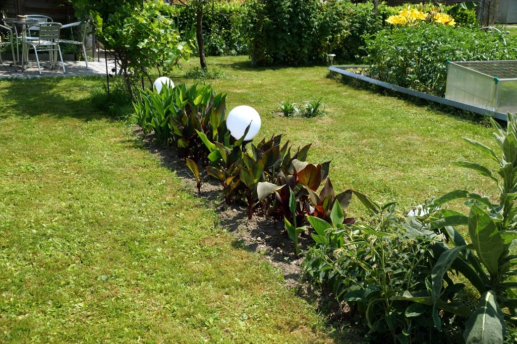Und ja, das Foto täuscht aus dieser Perspektive. Es sind gut fünf Meter Canna-Beet...