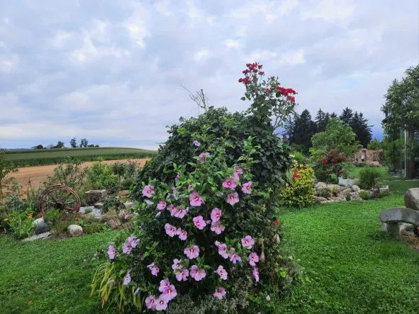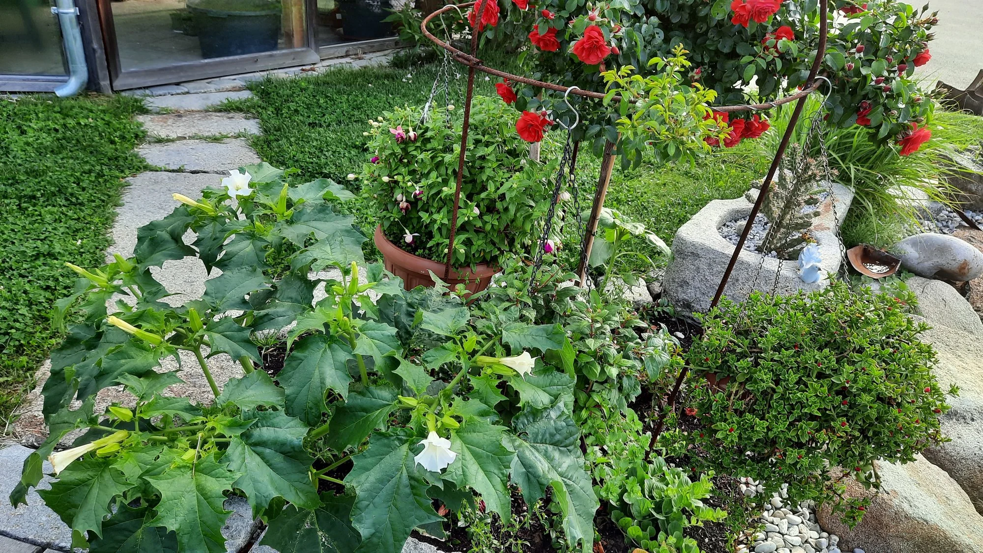 hat mich ( 1,70m) mittlerweile überwachsen , Pelargonienatürlich gewachsenen "Holzskulpturen"