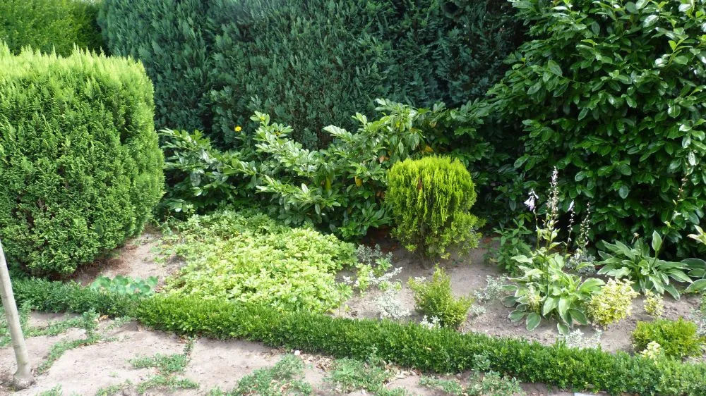 Die Ecke vor dem Zaun (Bild 2 rechts) da sollen niedrig blühende Stauden hin.