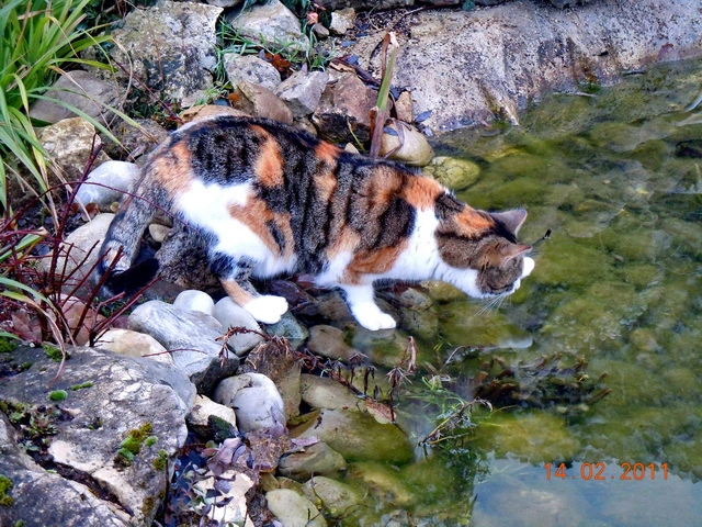 Bis vor kurzem ist meine Mieze im Garten immer eine Abkürzung übern Teich gegangen017ÜbernTeich.webp