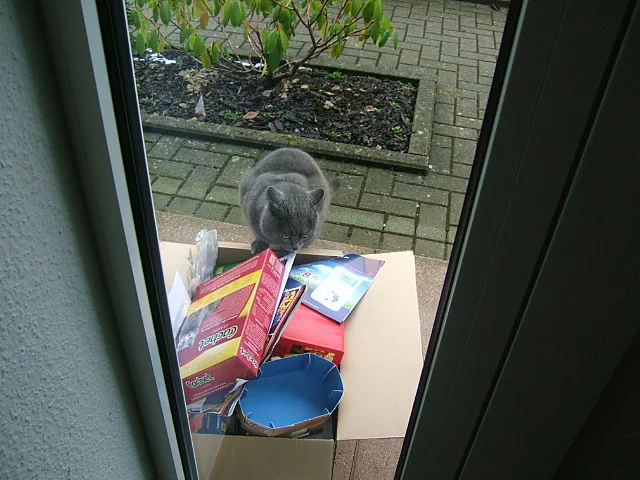Aber meine sind auch Karton-verrückt. Ich bin noch nicht fertig, einen auszupacken, da ist er schon in Beschlag genommen.