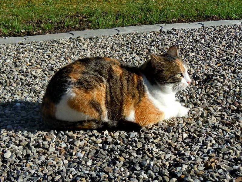 Das Nachtlicht ist aus und die Schwarzweiße kommt,dreht sich 5x im Kreis und platscht wie ein fetter Pfannkuchen auf die Bettdecke (vorher hat sie aber genau ausgemessen,wo die exakte Mitte des Bettes ist..),die Tigerin kommt da schon näher-sie hat ein eigenes Kopfkissen,aber irgendwann verschwinden sie in der Nacht...Aber bis dahin ist der geringste Platz im Bett dann meiner....