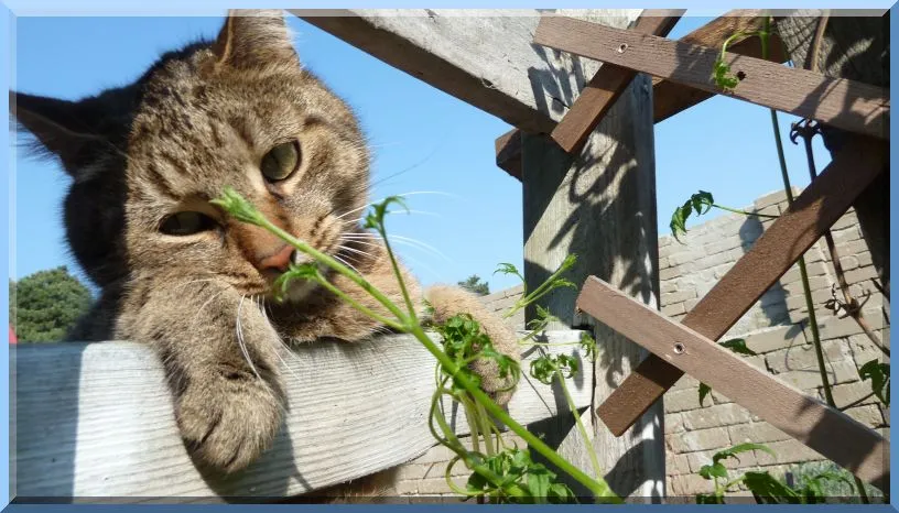 Ich habe heute meinen Oscar erwischt, als er auf die Leiter kletterte und an den Clematisblüten spielen wollte.