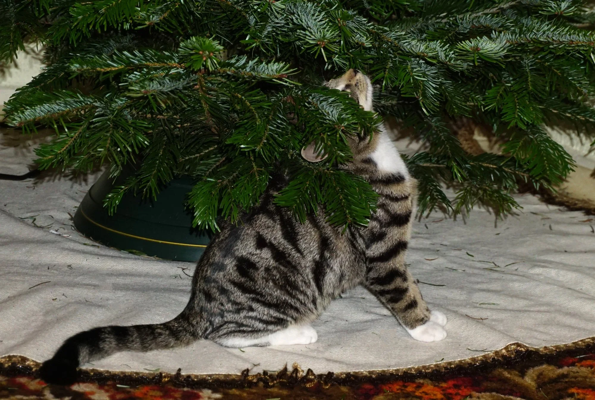 Die beste Szene gab's aber erst heute, und natürlich wieder zum unpassendsten Zeitpunkt. Lissie war zum erstenmal mitten in den Baum gesprungen, während meine Kamera am Ladekabel hing ... :mad: