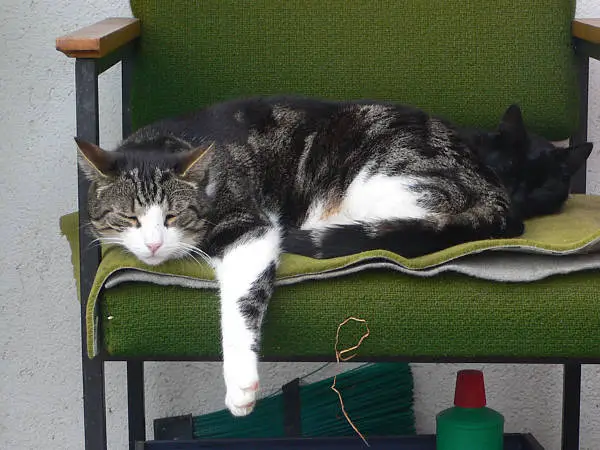Katzen graben sich doch eine kleine Grube, wo sie reinmachen, und buddeln's danach wieder zu.