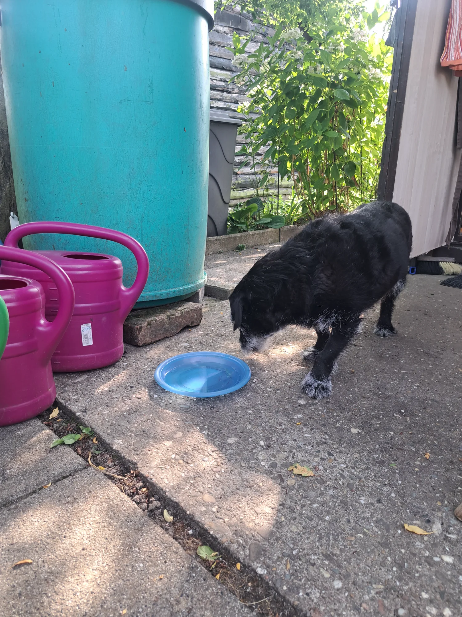 Er kam entspannt reinspaziert. Ließ sich streicheln, bekam Wasser und , logo, Leckerli.