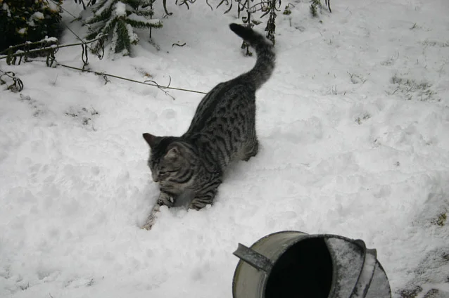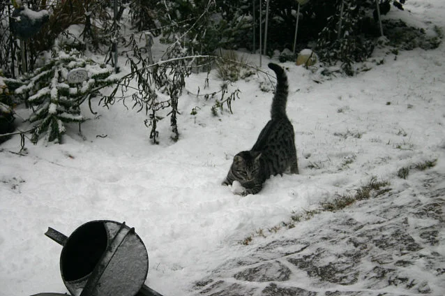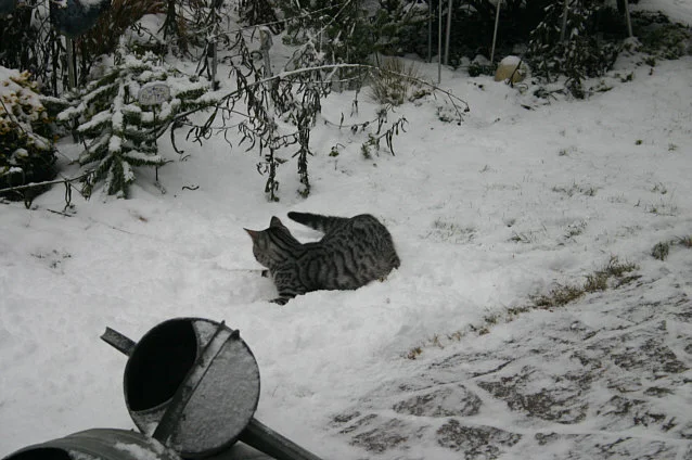 Charly ist garnicht erst raus, als ich die Tür aufgemacht hab, ist gleich unter den Tisch geflitzt. Carlo wollte wohl mal probieren, fand die Idee dann aber doch irgendwie doof und ging ganz schnell wieder rein.Naja, wenn ihr der Schnee auch bis an den Bauch geht...