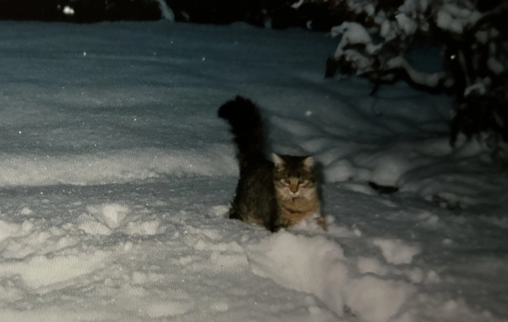 • Ach wie schön. Die Katze scheint den Schnee auch zu lieben. Mein Kater Seppi, der stammte ja ursprünglich von einem Bauernhof, der liebte den auch so. Wenn da Schnee lag, dann tobte er draußen rum wie verrückt, vor Freude. Das hatte ich so noch nie bei Katzen. Entweder hatte er als er ganz klein war auf dem Bauernhof einen Hund der das gemacht hat und er hat es ihm nachgemacht. Ich konnte mir das nicht anders erklären, denn das war wirklich außergewöhnlich. Da ist so eine Schneefläche, die war vorher total ungerührt, nach Seppi´s rumtoben, sah die so aus......