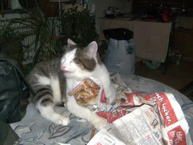 Das Katzentier auf dem folgenden Foto, futtert schon mind. 3 Jahre bei uns. Wir nennen es Momo, denn wir wissen nur, dass es sich um ein "Es" handelt.