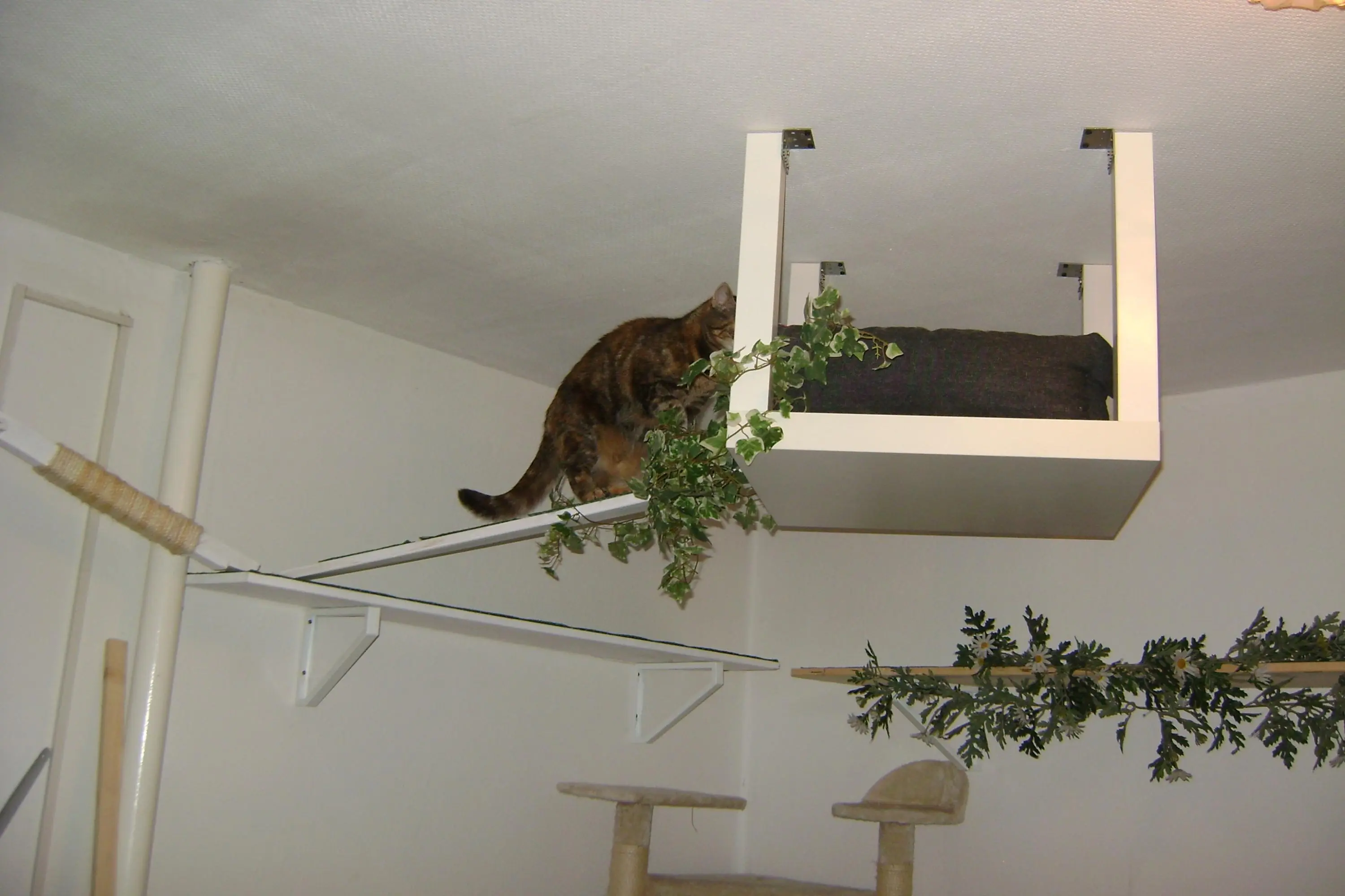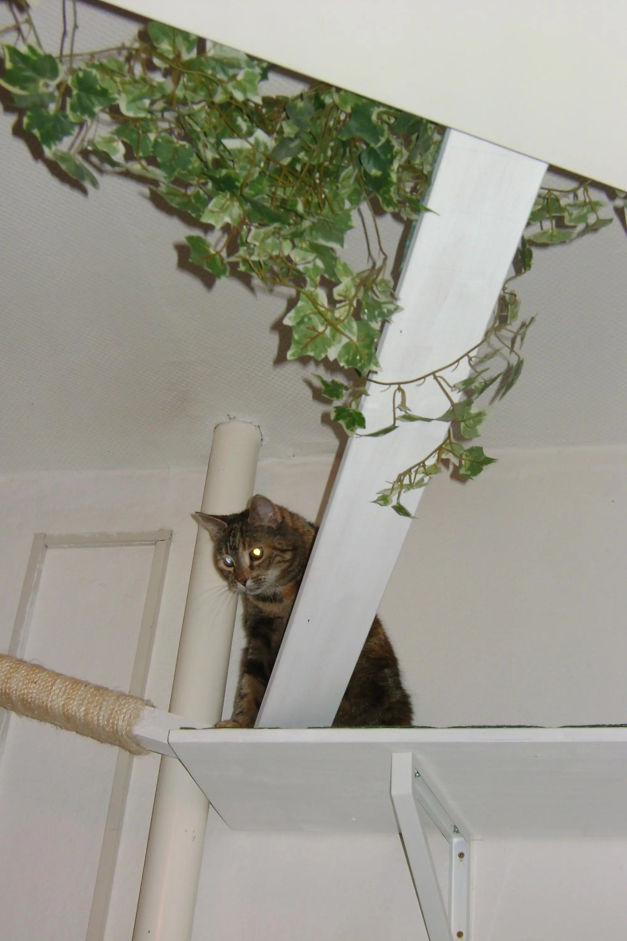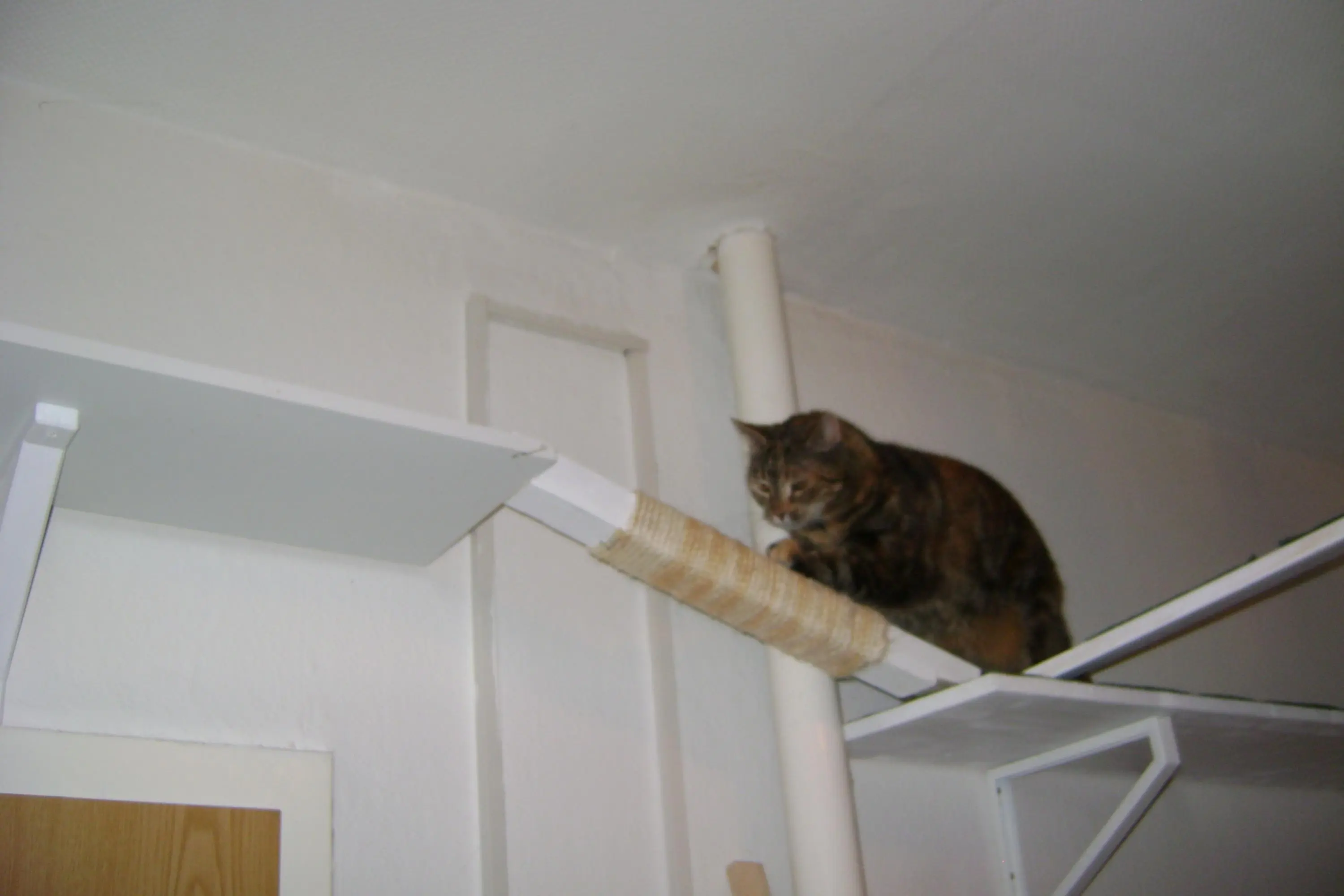 Das ist uebrigens mein grosser Flur der Zimmergrösse hat 3,20x3,60 da hat sich die Kletterbastelei angeboten - Kommt demnächst aber noch nen zweiter kleiner Ikeatisch an die Decke, da der sehr beliebt ist -Noch ne Verbindung dann zwischen den Tischen als Laufsteg rueber , dann können sie auch durchstarten - Dann hat jeder einen und keiner muss mehr warten bis der andere ausgeschlafen hat . Na ja u den Pflegis die auf Zeit hier sind machts auch Spaß .:)