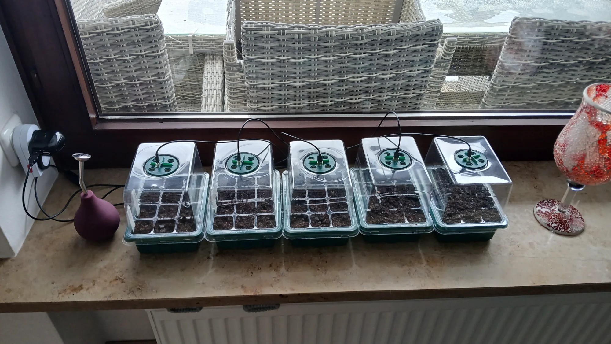 Mal sehen. Sie stehen dieses Jahr auf der Heizung mit Korkuntersetzer. Sonst hatte ich die Anzucht im Badezimmer auf der Fußbodenheizung. Da ist leider Baustelle. 🚧
