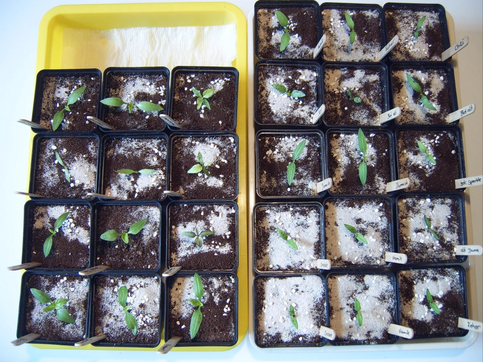 Der Unterschied von klein (gerade pikiert letztes Bild unten) zu groß (vor 4 Wochen pikiert 1 Bild)