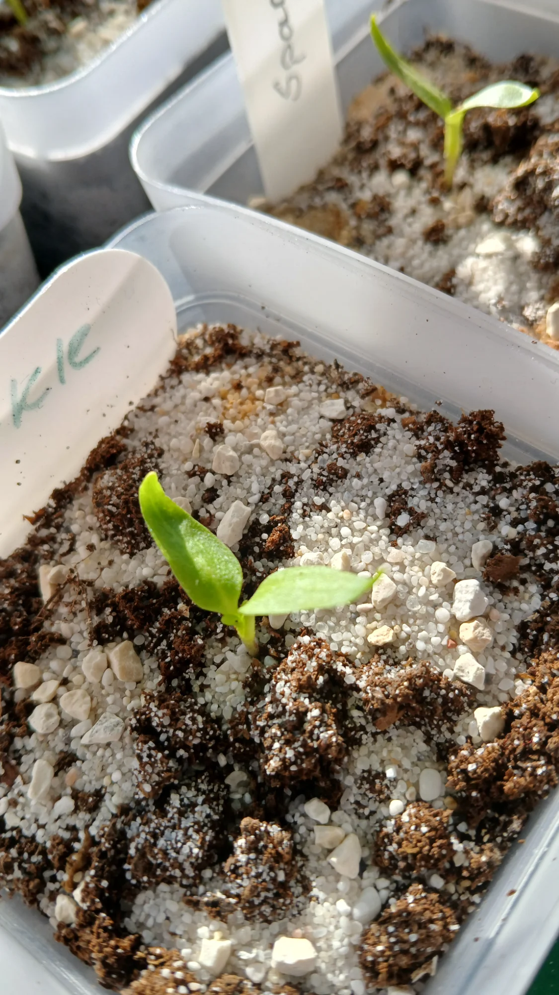 Oh ja der sieht schon sehr sehr mini aus, sind die gleichzeitig aus der Erde gekommen oder kam der kleine etwas später, manchmal täuscht das ja auch, weil die ersten schnell wachsen, wobei der wirklich mini aussieht.
