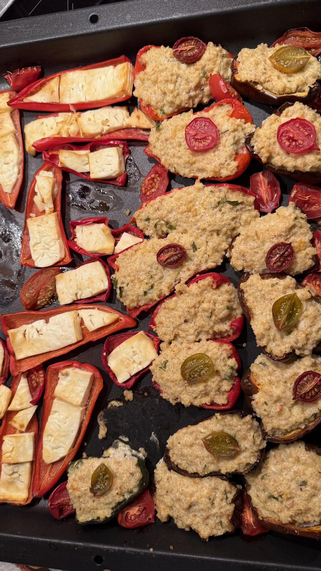 Ist ein Dip aus gerösteten, enthäuteten Paprika, Knoblauch, Kreuzkümmel und Öl (Rezept findest du im Netz).