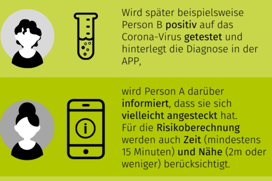 Mich interessiert die Kommunikation der App, nach einer Meldung eines Erkrankten.