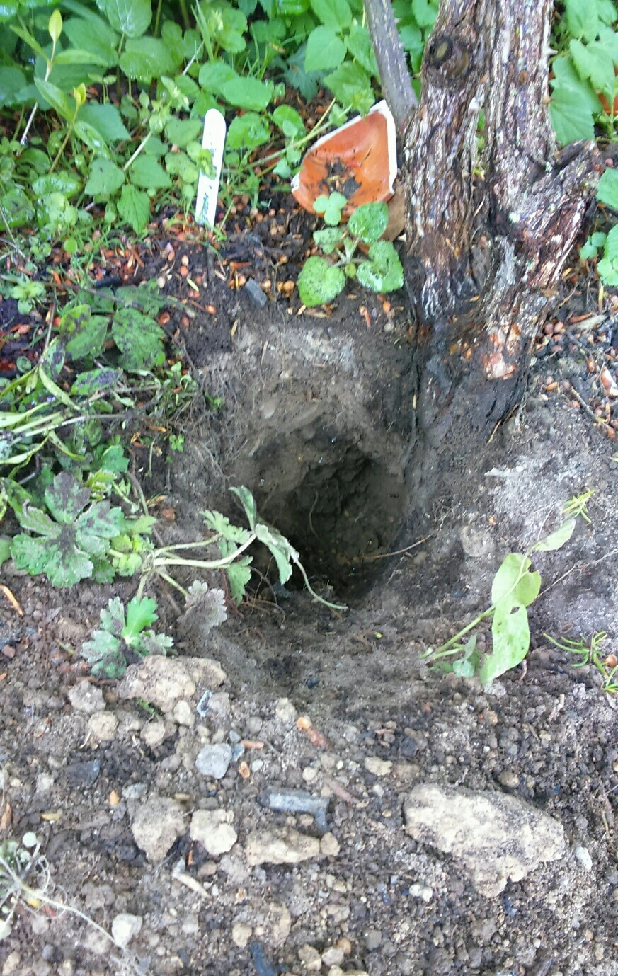 Hoffe die Rose hat nix abbekommen... Loch ist zu und mit Steinen gesichert.