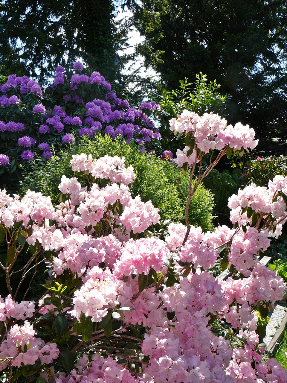 Was für schöne Bilder! Deine Rhododendren sind ja beeindruckend.:cool:Sind das eigentlich so richtig große Büsche? Da hast Du nach der Blüte mit der Ausputzerei sicher viel zu tun. Aber so, wie sie bei Dir gedeihen, lohnt sich die Arbeit.