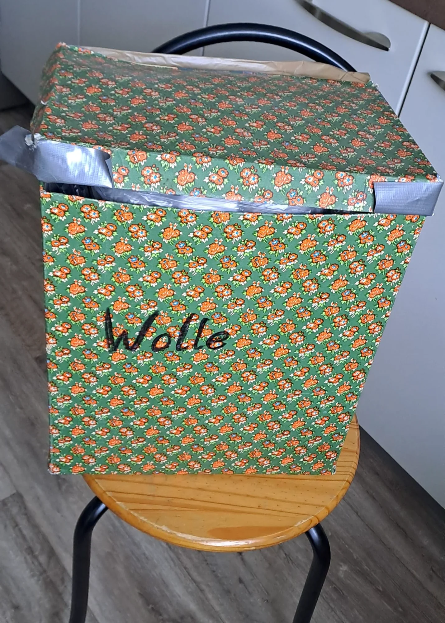 Meine Mutter hat leere Pamperskisten von Baby-Knuffel mit Folie beklebt und als Lager für Bastelmaterialien aller Art verwendet.
