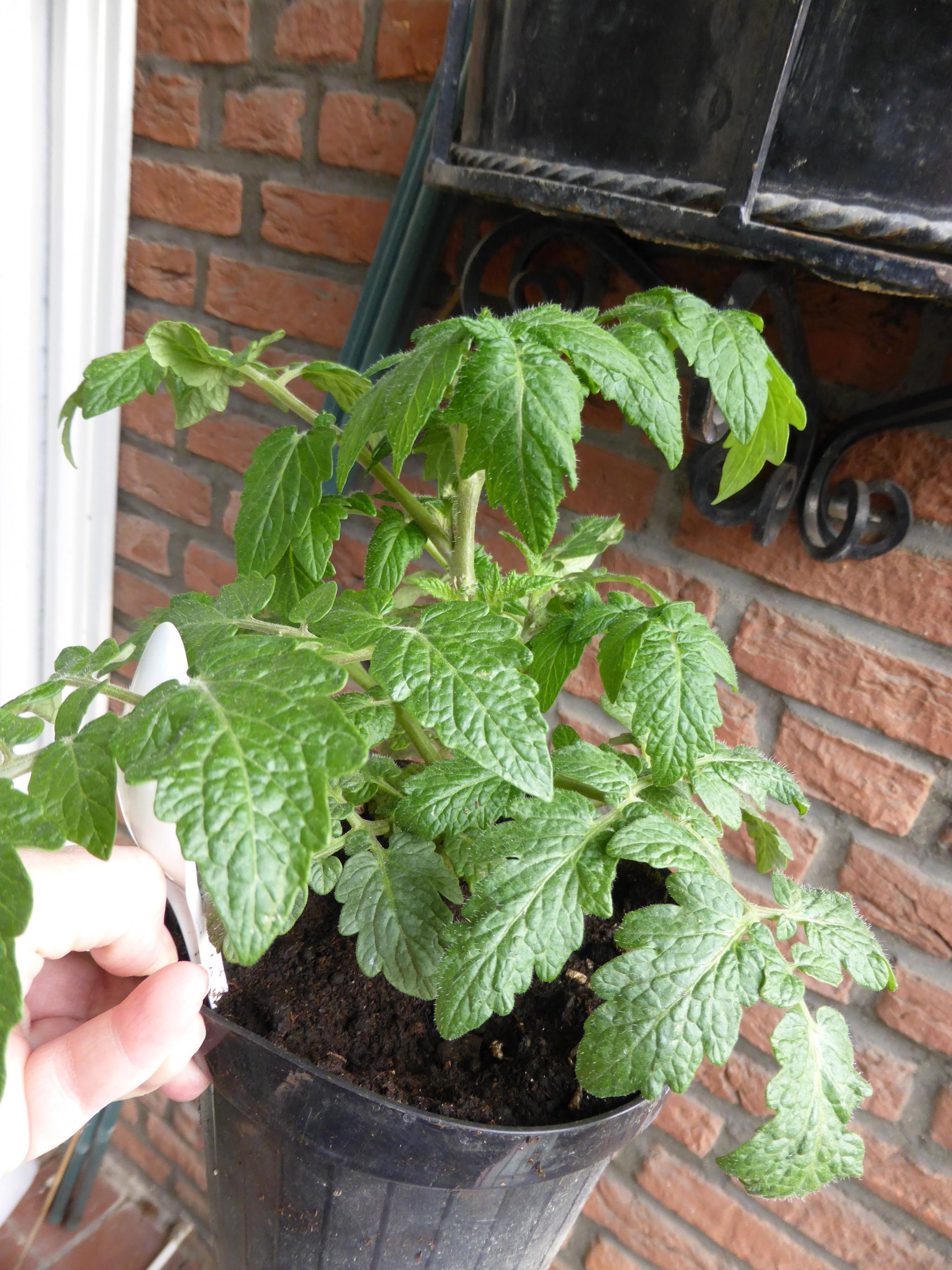 Sie ist die Einzige meiner Tomaten, die den gemeinschaftlichen Sturz ohne Blessuren überstanden hat. (Mir ist der Kasten mit allen 5 Tomatentöpfen aus dem Arm gerutscht, als ich sie nach einer Nacht drinnen wieder rausstellen wollte.) Es sind einige kleine Knospenansätze zu sehen, aber irgendwie geht es nicht weiter.