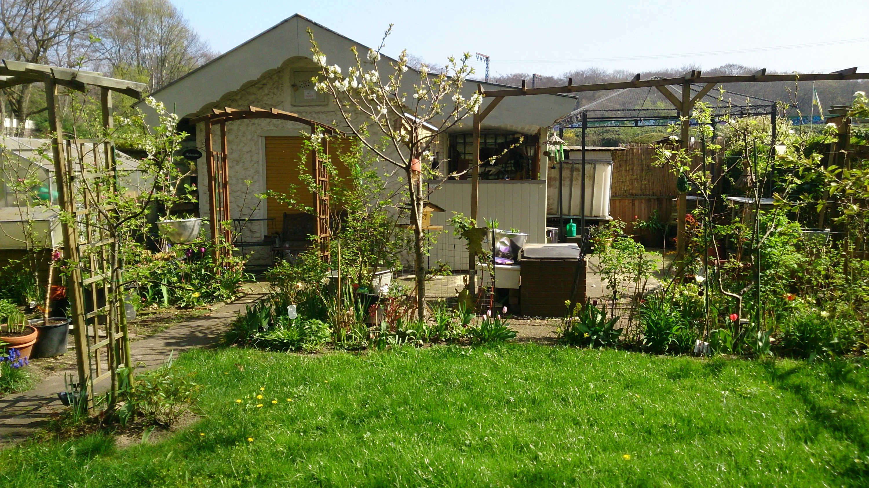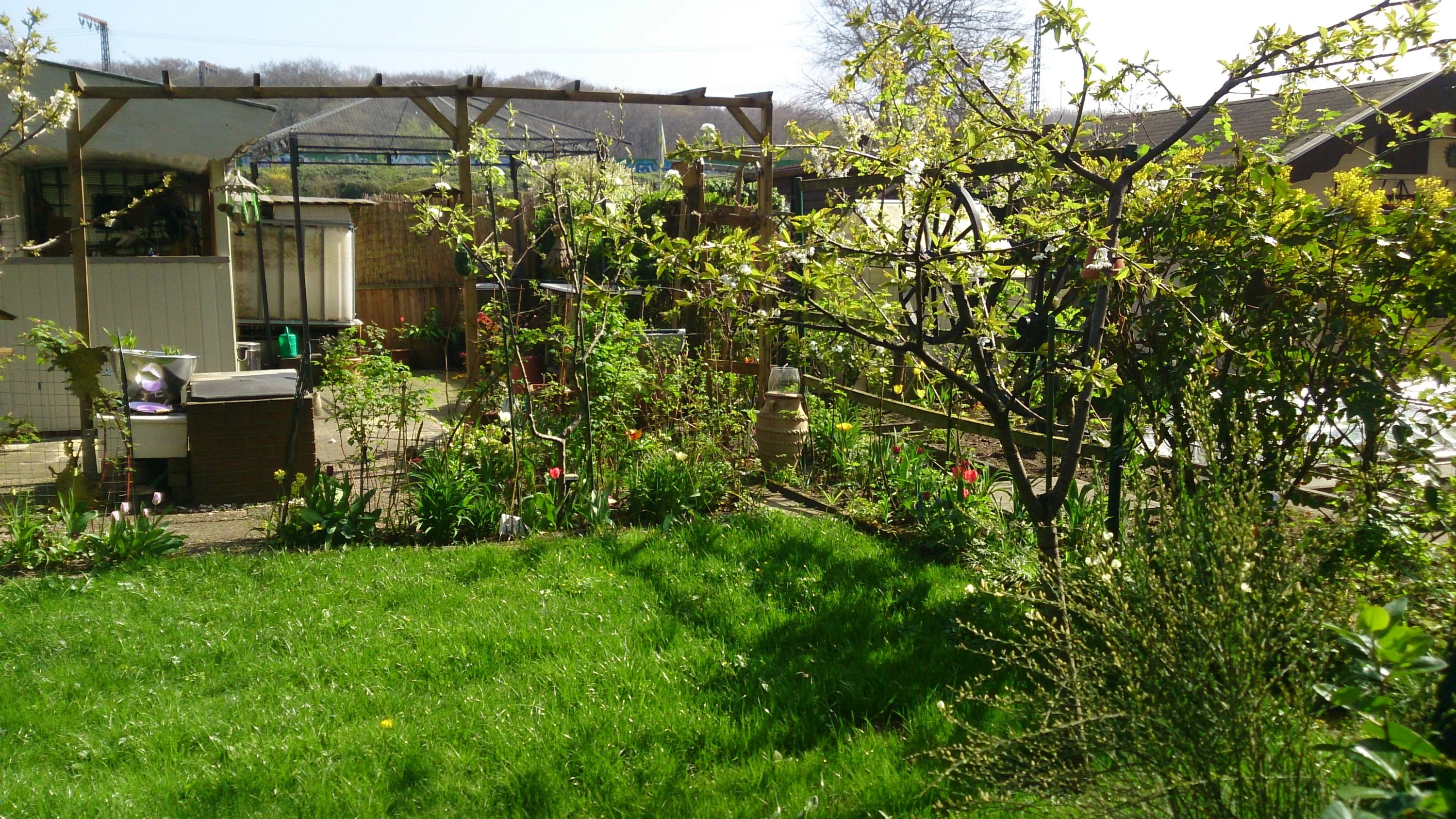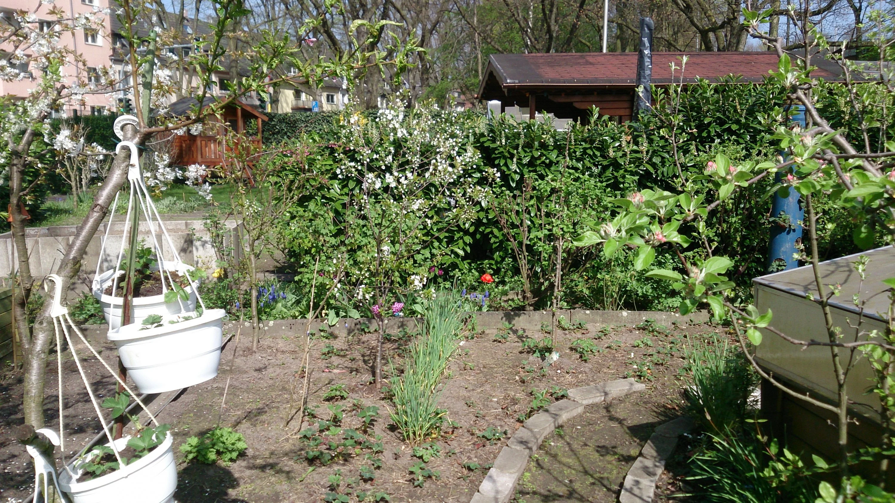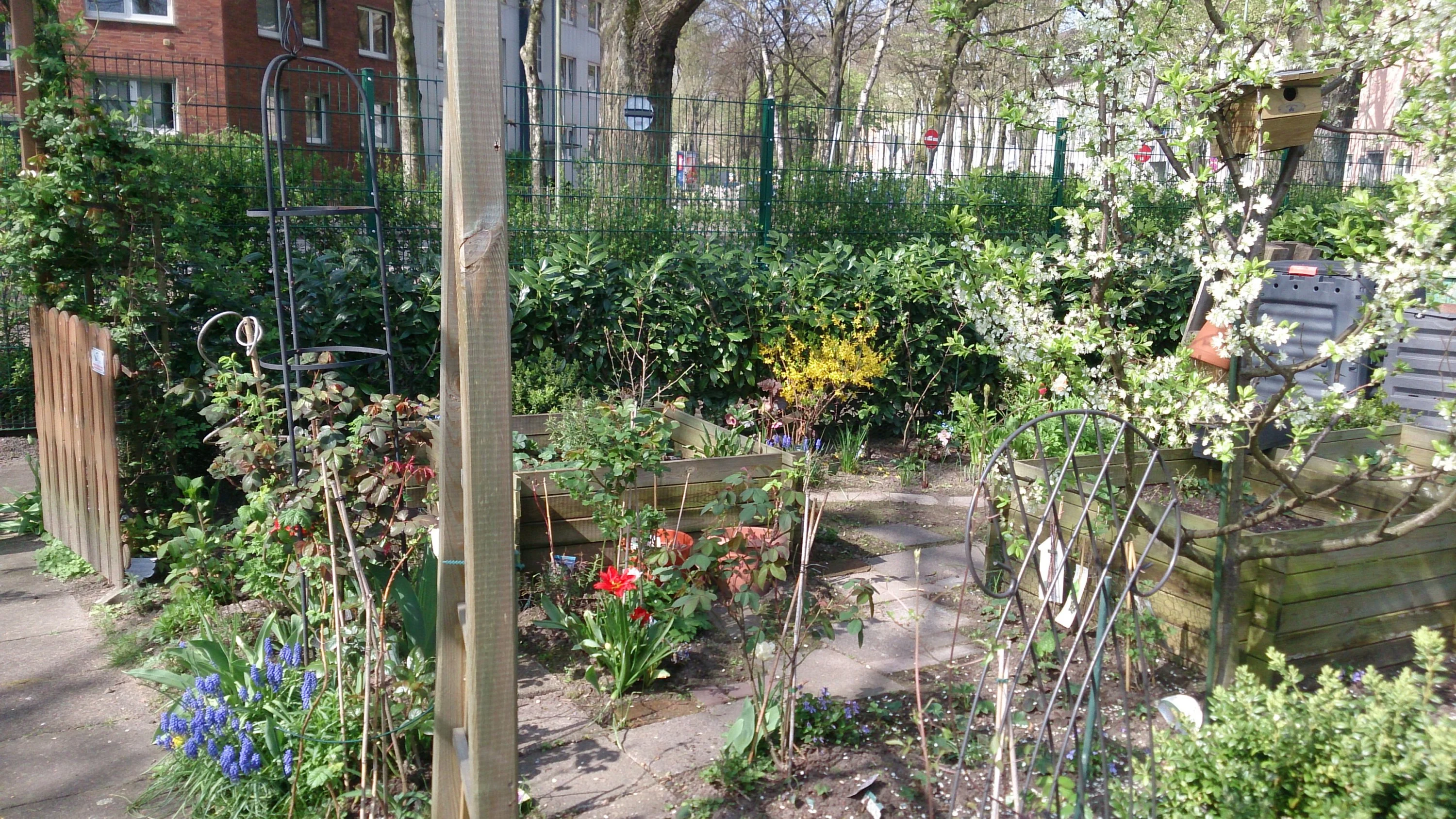 Gibt's denn auch schon Rosen an den Rosenbögen? Und aus was ist die Schale für den Miniteich? (Schade, dass ein paar Bilder auf dem Kopf stehen.) Die Farbe deiner dunkelroten Tulpen gefällt mir. Freue mich auf weitere Bilder!