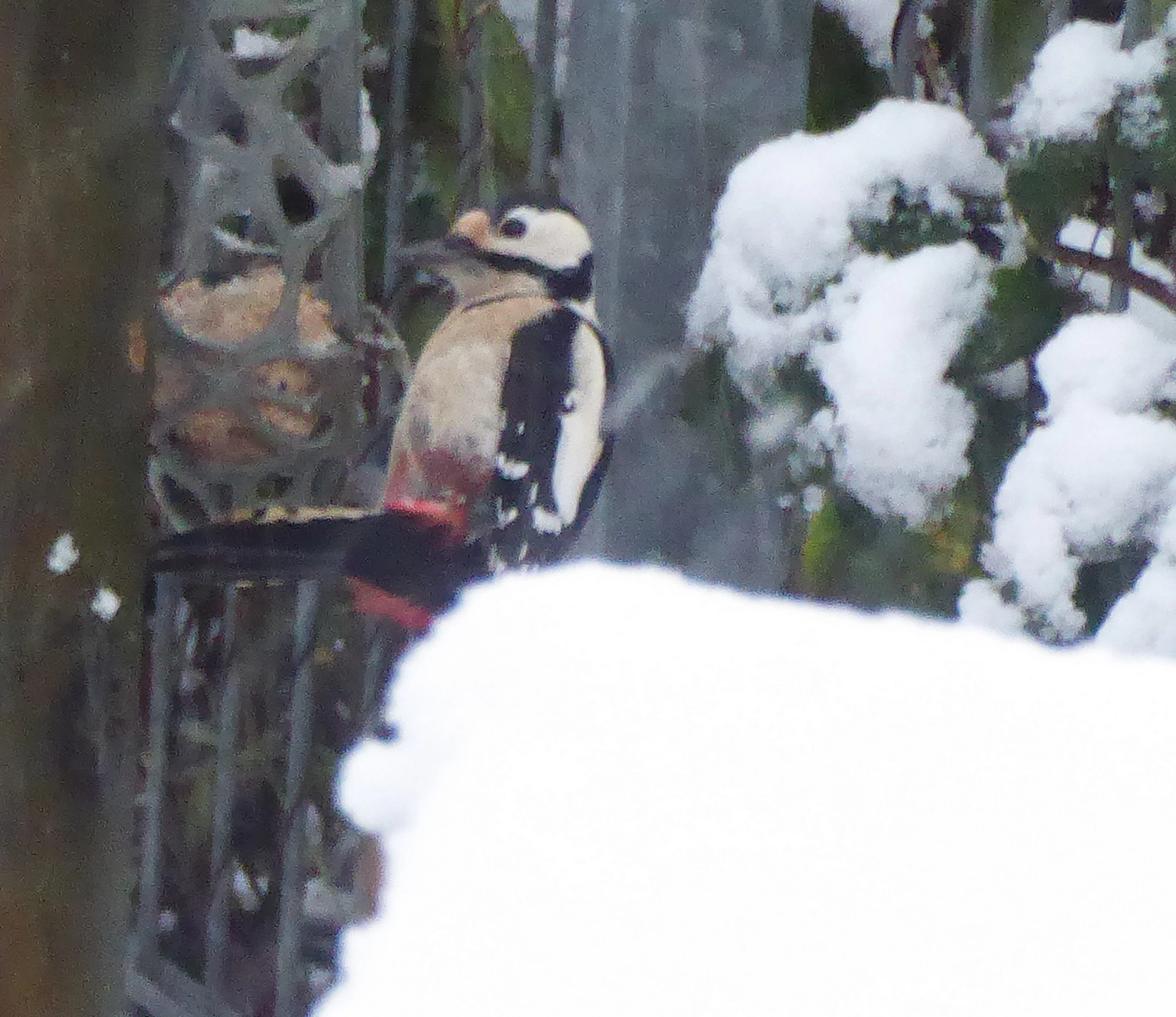 Aber manchmal gibt es doch viel Schnee, ich habe noch nie einen Grünspecht auf der verschneiten Wiese gesehen. Was macht dieser Vogel, wenn alles voll Schnee ist?