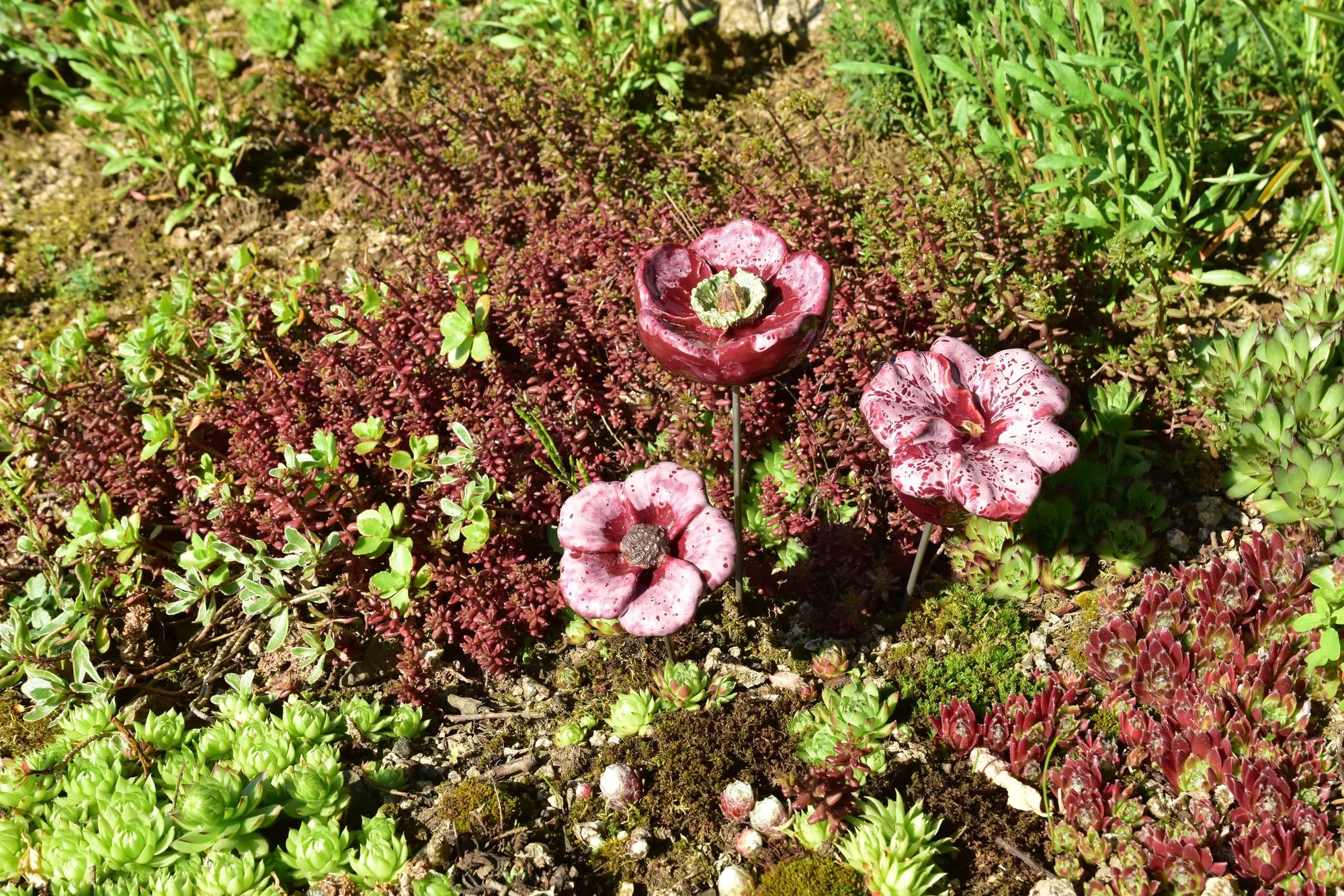 die Keramikglöckchen kaufte ich für die Zeiten, an denen jahreszeitlich nichts lebendiges zu sehen ist im Topf (ungefähr 6 Wochen lang). Das Witzige, fand ich jedenfalls, dass alle Glöckchen im Zusammenklang wie eine Familie aussehen.