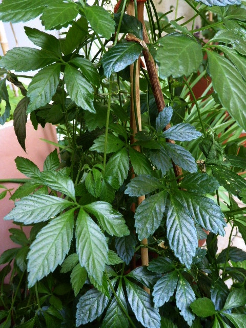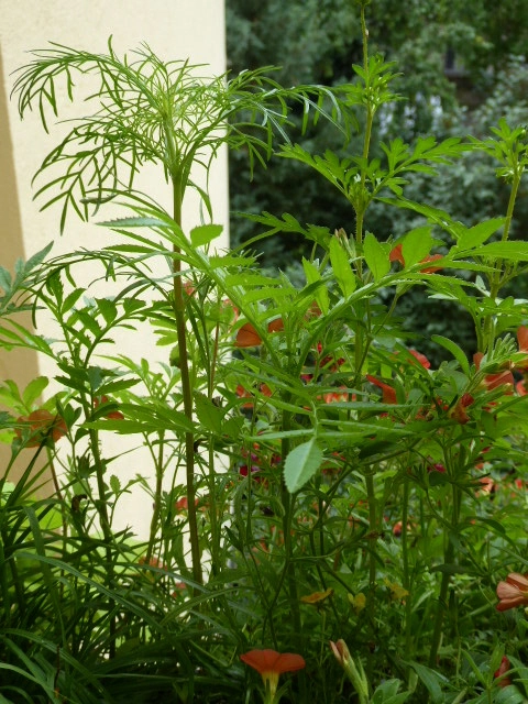 Der (die, das) Jiaogulan wuchert wie blöd. Unglücklicherweise kann ich dem Geschmack immer noch nichts abgewinnen. Ich arbeite weiter dran. Von dem Samen, den ich in Lücken gestreut habe ist Einiges aufgegangen. Eine Kosmee kann ich erkennen. Bei den anderen Beiden warte ich auf die Blüte und das angebissene, winzige, weiße Ding kenn ich auch nicht, Egal, Hauptsache es wird geblüht.