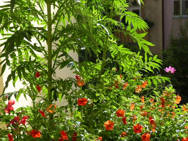 Hier war es recht stürmisch, aber selbst die große Tagetes, in exponierter Lage, hat es nicht abgeknickt.