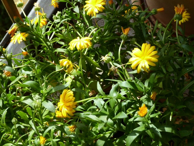 Ich brauche mehr Schnecken. Morgen fahr ich im Lenbachhaus vorbei. Hoffentlich gibt es noch welche, die goldenen waren beim letzten Mal schon knapp. Gold Daisy blüht seit Mai. Die erste Ringelblume die auf dem Balkon überlebt.
