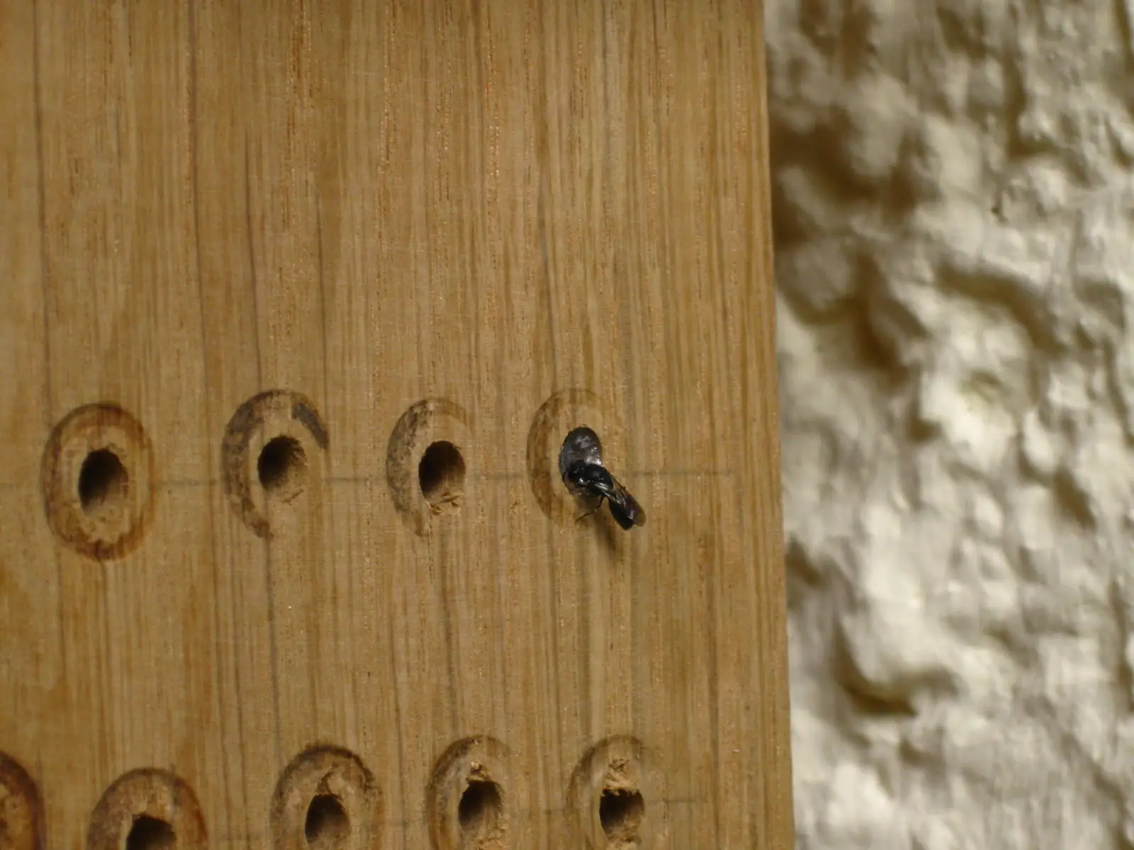 genau, auf jeden Balkon ein kleines Insektenhotel. Ich hab' nicht geglaubt, daß es funktioniert und bin jetzt hell begeistert. Das kleine Ding hat gestern fast eine Stunde gebraucht, bis das Loch zugespachtelt war.