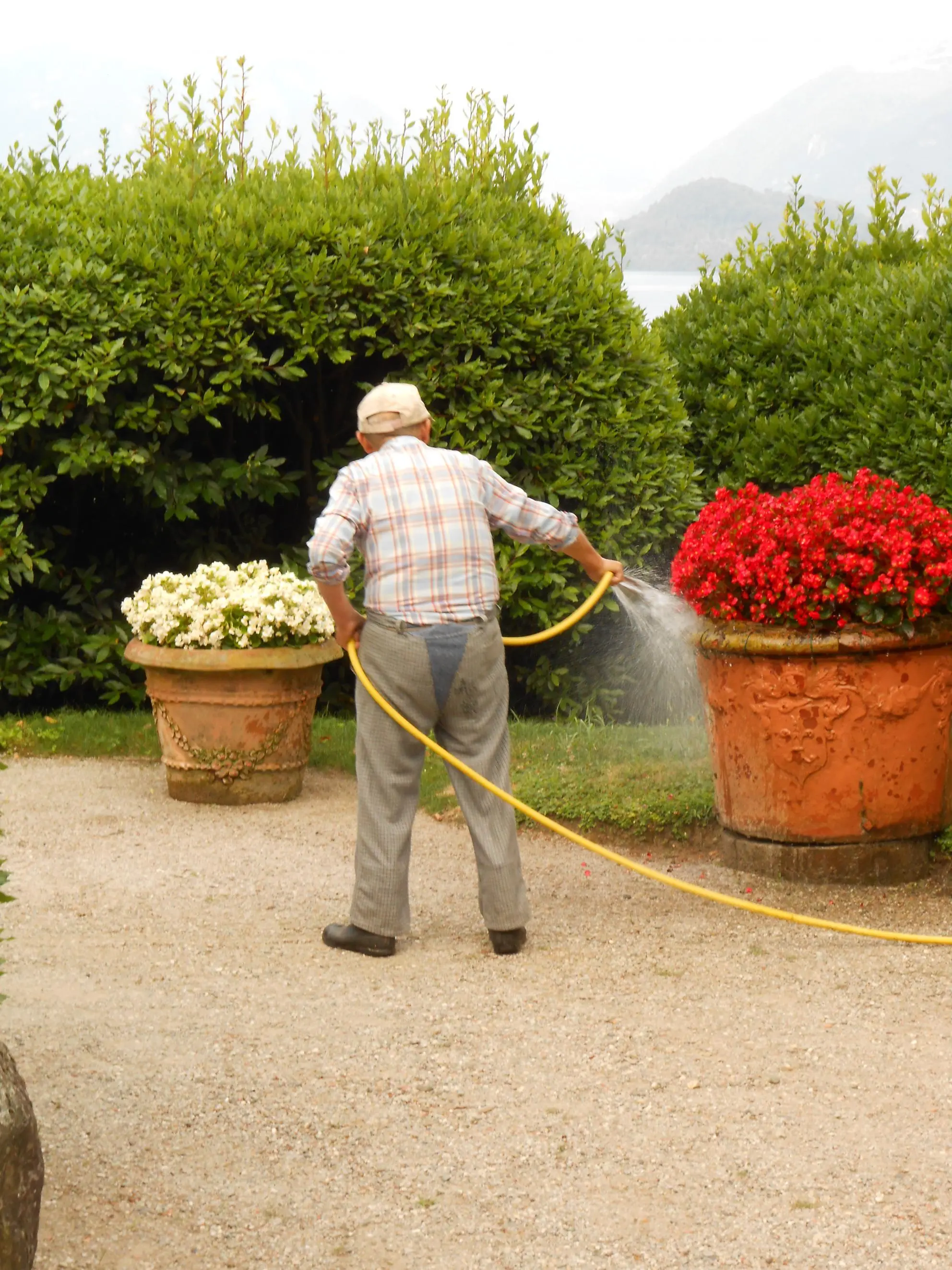 • Den Opa fanden wir knuffig. Ist ein Gärtenr in der Villa Melzi / Bellagio.Hat wohl zu viel Pasta schnabuliert , so mußte die Pantalone angepaßt werden.