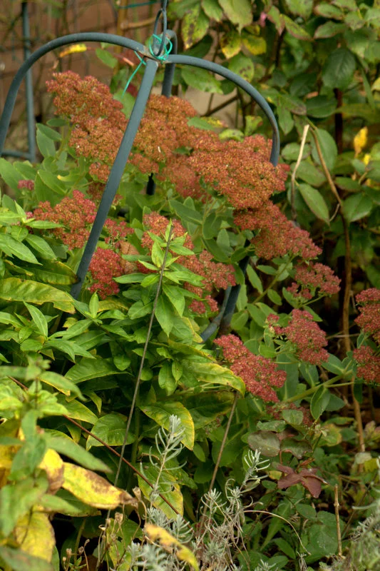 Meine Fuchsien blühen noch und sie dürfen draußen in der Herbstsonne stehen. Letzte Woche mussten sie für einige Tage ins Haus umziehen, weil wir ganz leichten Nachtfrost hatten.