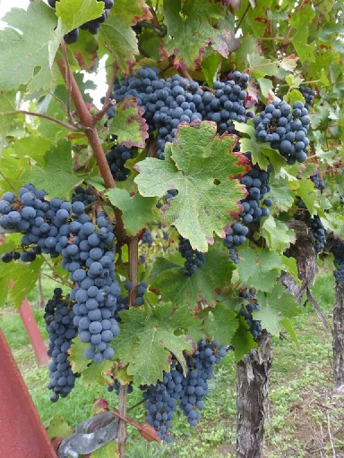 Leider nicht meiner, nur fremdgeknipst. Meine Rebe Muscat bleu lebt zwar, trägt aber noch nichts.