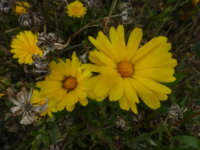 Hier nochmal die derzeit schön großen Blütenlöpfe der Ringelblumen, weil und solange sie so toll leuchten.