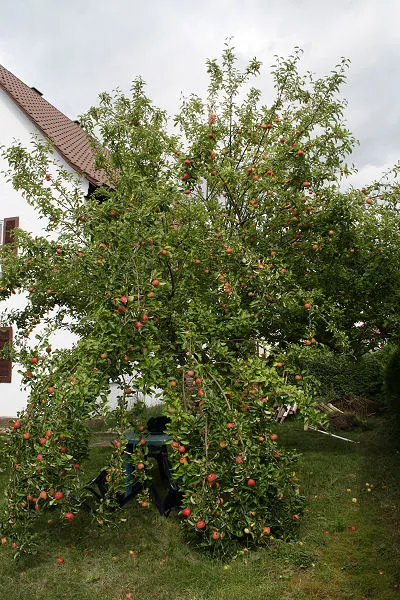 - das Apfellaub zusammen gerecht und in der wilden Ecke aufgeschichtet