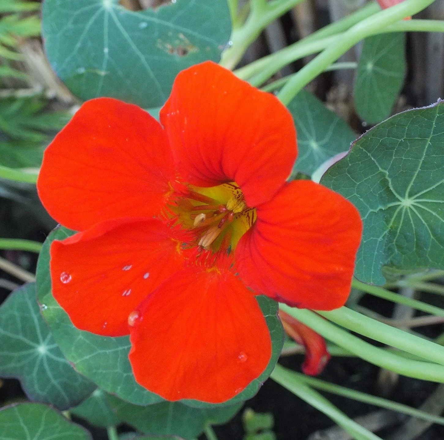 Den rot-blättrigen Winzling hab ich ausgebuddelt und in einen Blumentopf umgesetzt.