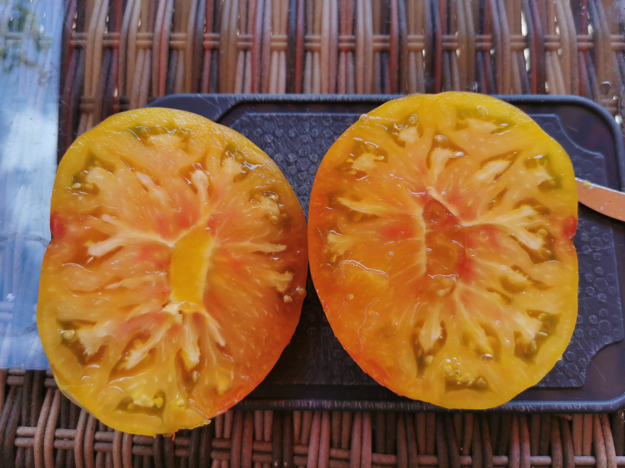 Ist sie denn schon reif? Schwierig bei den zusammengewachsenen den Reifezeitpunkt zu bestimmen, ein Teil reif, der andere noch nicht.Heute geerntet - meine zusammengewachsene Lehrertomate