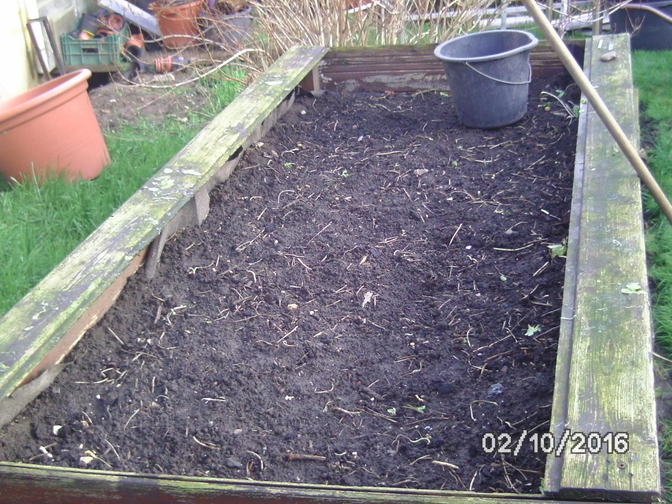 Hochbeet nur nen bißchen gesäubert. Hab keinen Mist mehr.