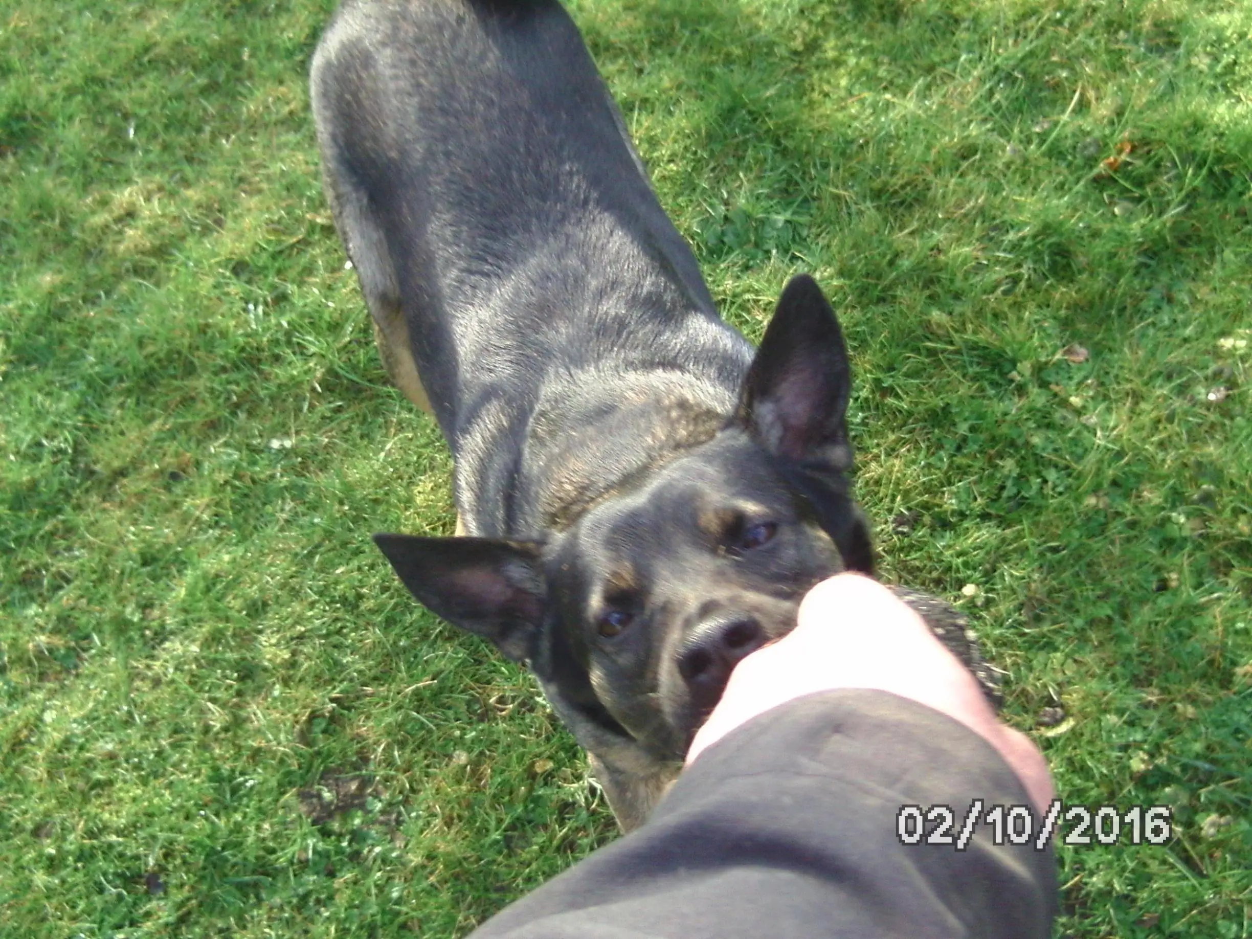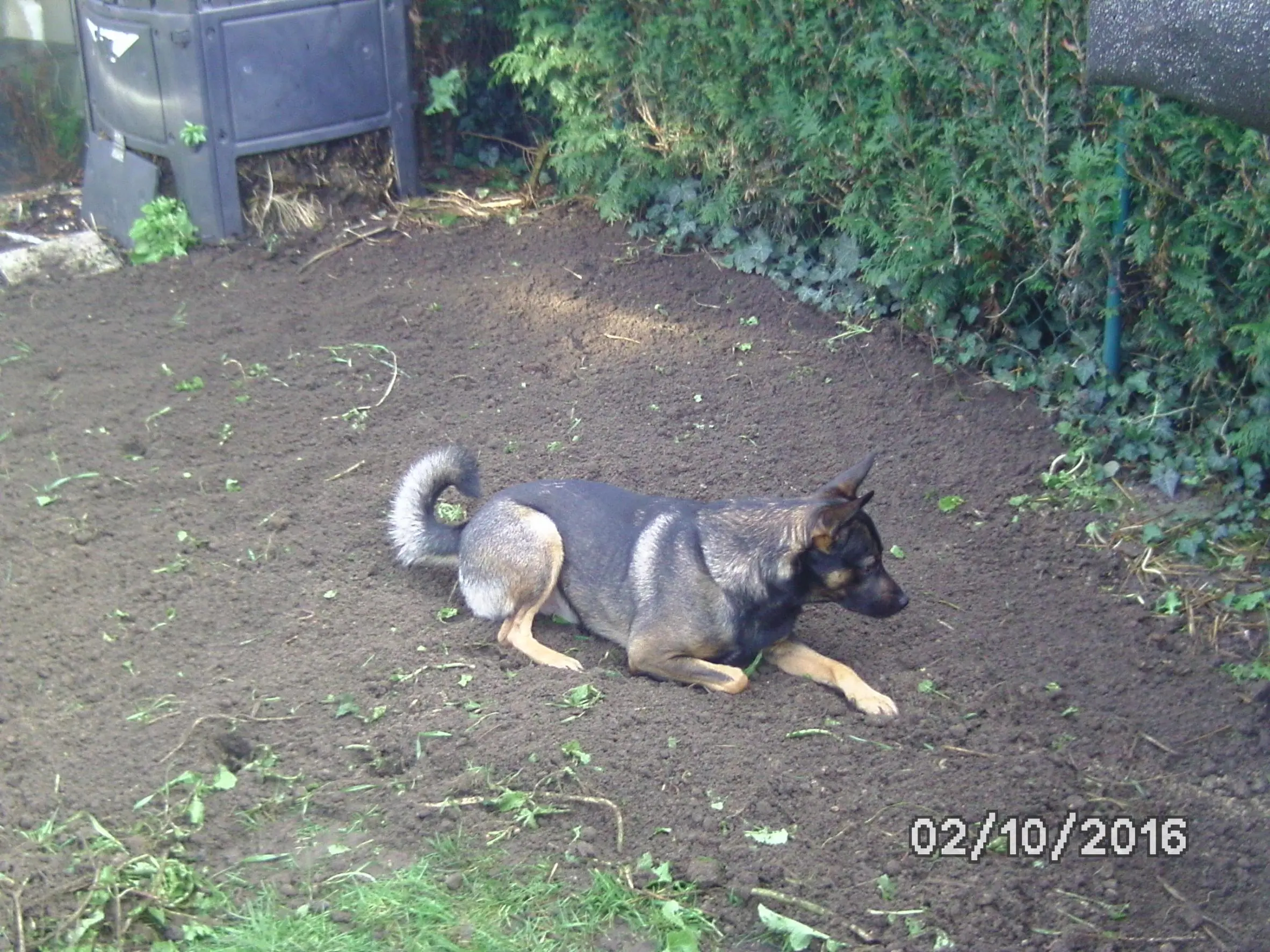 Hier ma wie gewünscht Jo. Man beachte seinen "Lieblingsball". Wehe da geht nen anderer Hund dran. Dann gibts Krawall.