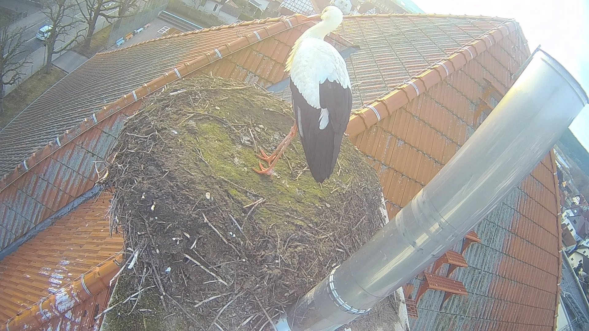Unser Breitunger Storch liegt jedenfalls ganz entspannt im Sonnenschein. Mit Bauen hat er es offenbar nicht so, auch wenn ein paar Äste schön nebeneinander gereiht am Rand da liegen.