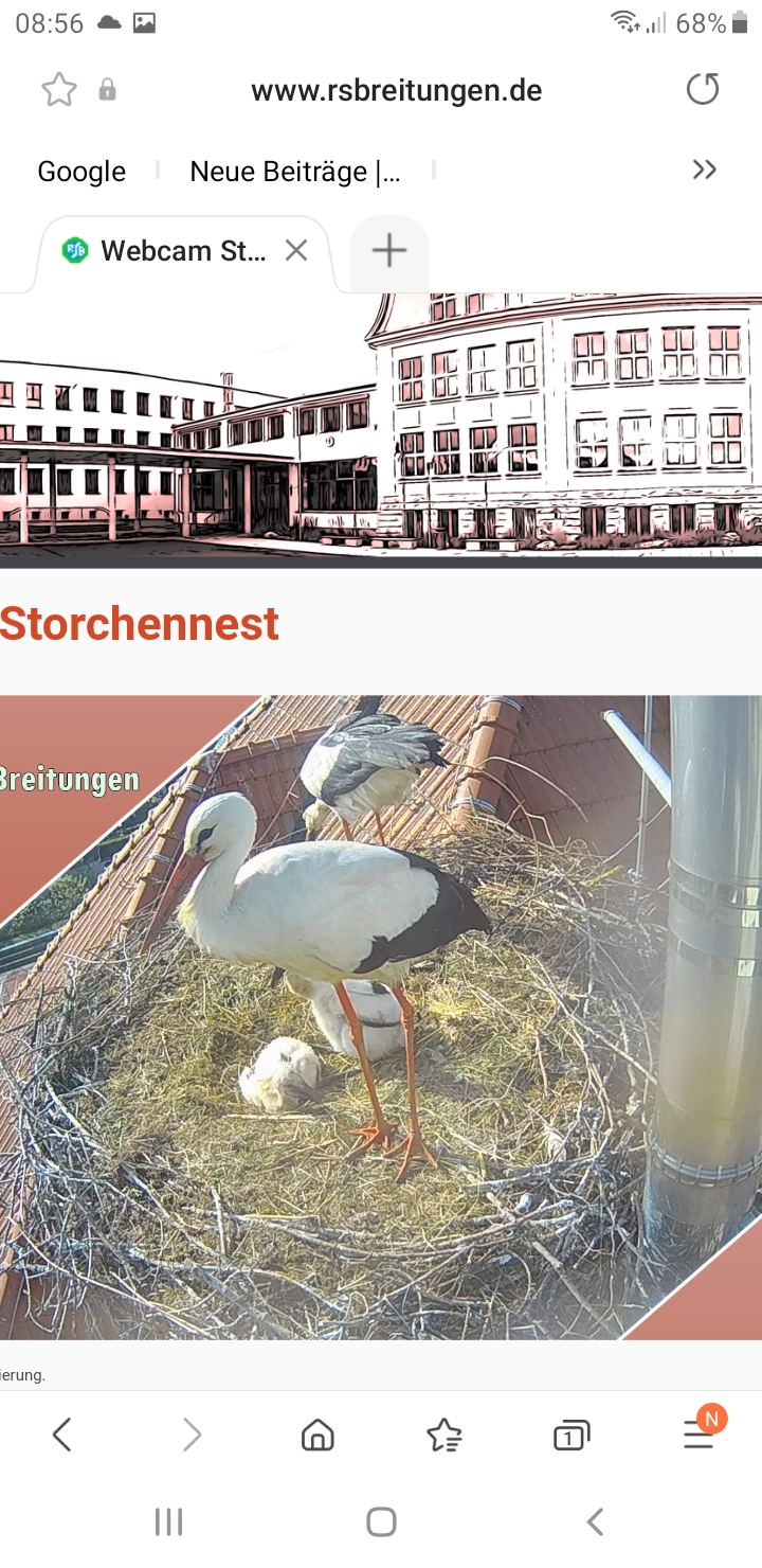 sind schon ganz schön groß, die Kleienen. Bei "unseren" Störchen ist gestern das erste Küken geschlüpft.