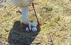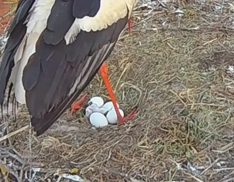 Ich glaube, das es der Schatten vom Schnabel ist...Am dritten Ei von vorne, beim Umdrehen, sah es so aus, als wenn da eine dunkle Stelle war