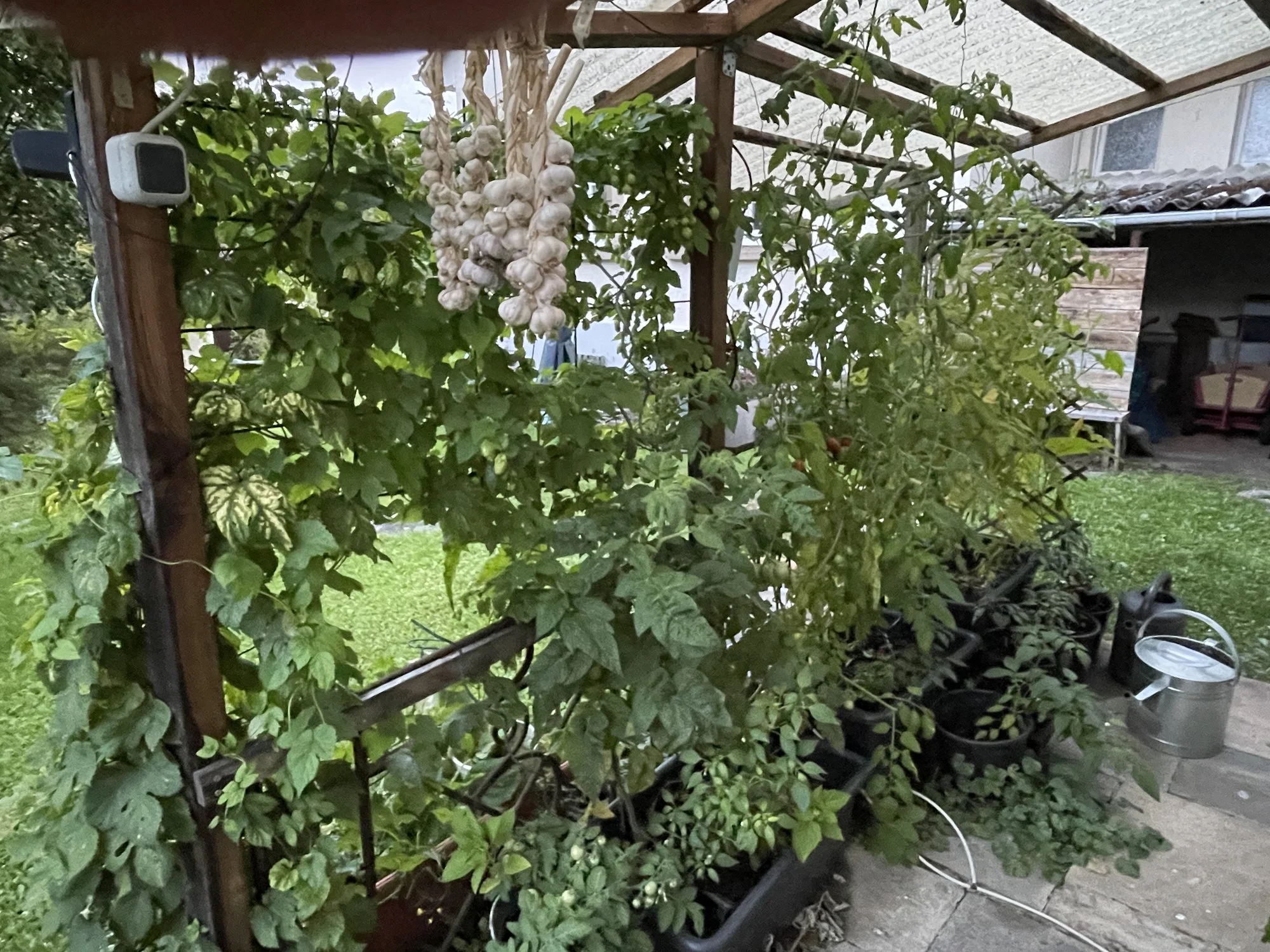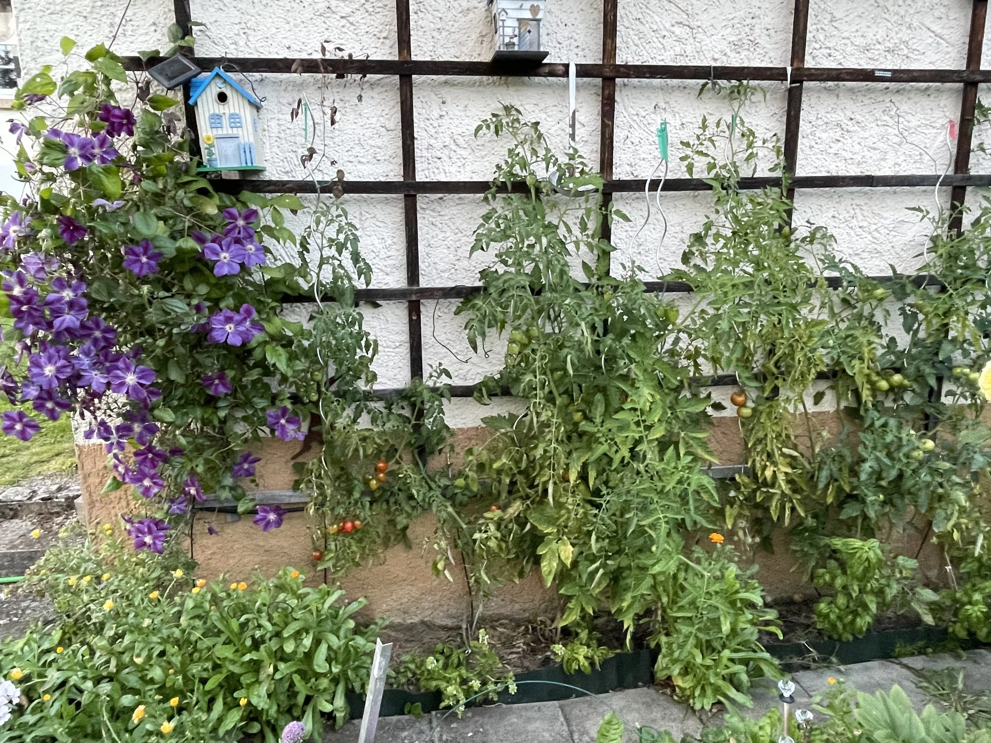 Tomaten und Chilis laufen mit automatischer Bewässerung und die paar anderen Kübel haben die Nachbarn gegossen